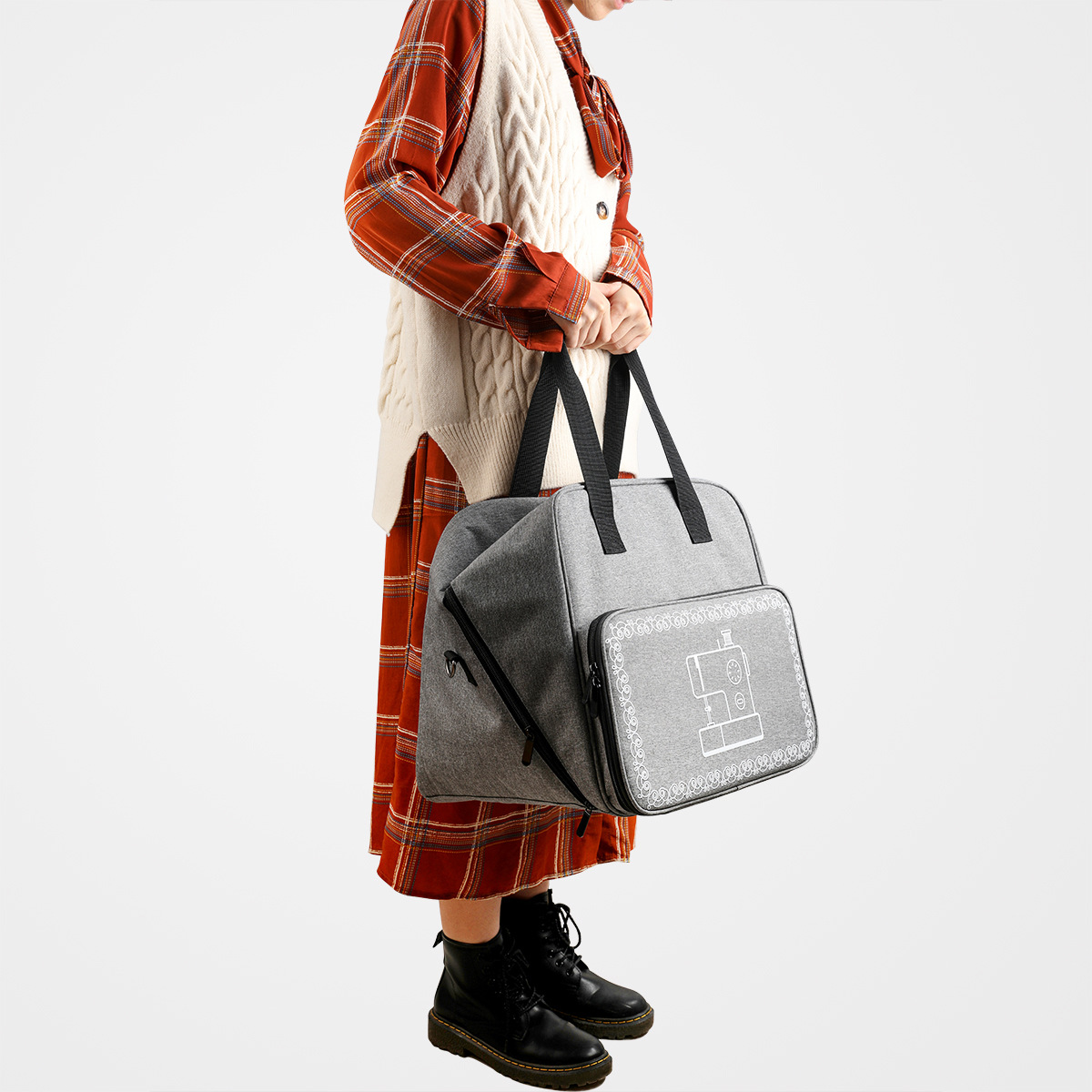 Product information:Applicable scenario: BedroomColor: small sewing machine bag purple, small sewing machine bag GrayFunction: CarMaterial: 600D Oxford clothStyle: modern simplicityShape: Cube style