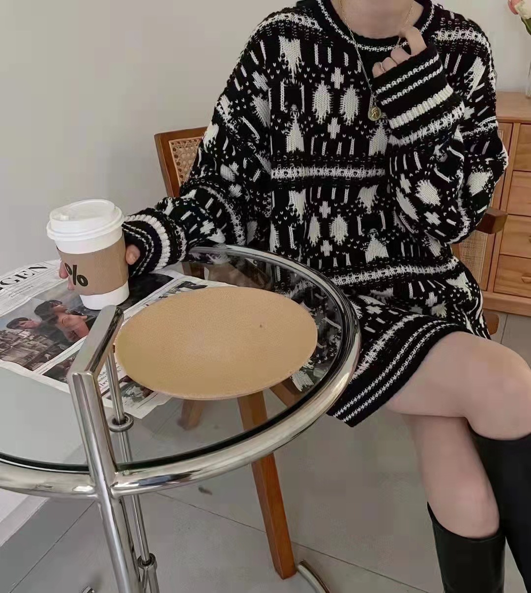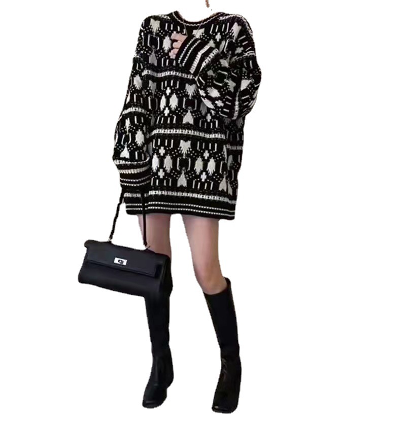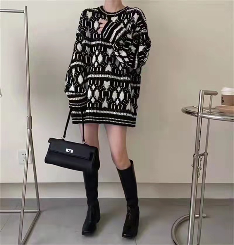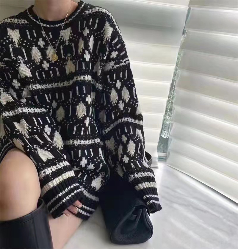 Product information:Fabric name: woolPattern: GeometricThickness: thickYarn thickness: ordinary woolSweater Technology: KnittingColour: BlackSize Information:Size: one sizePacking list:Ladies' top*1