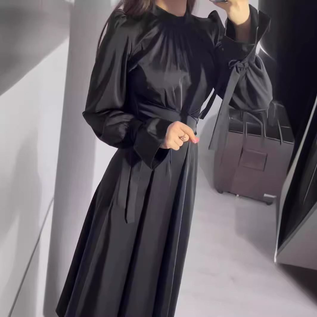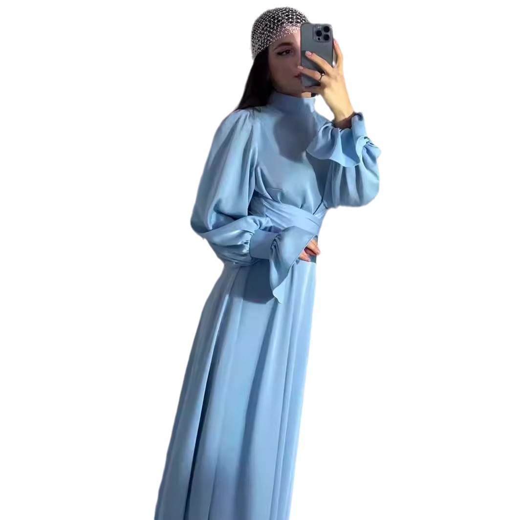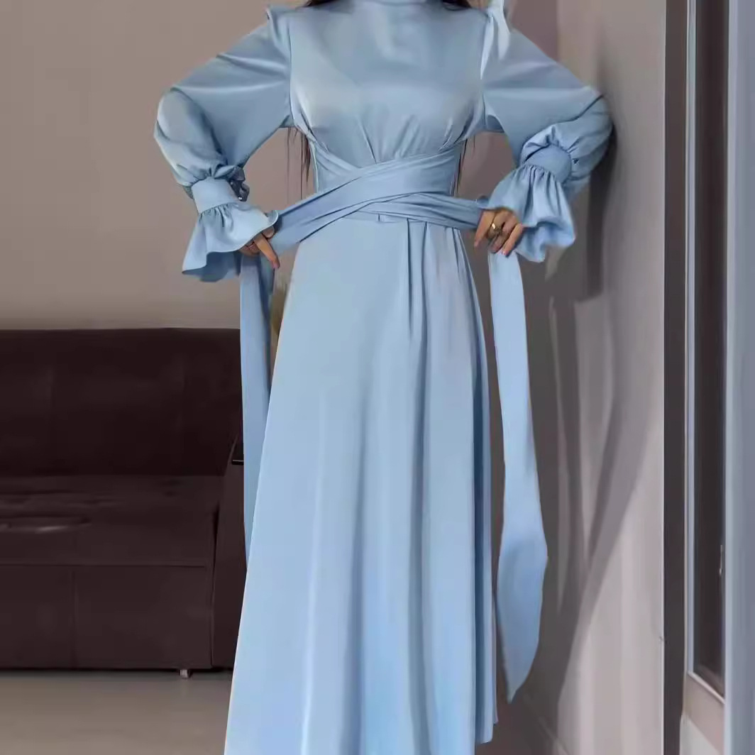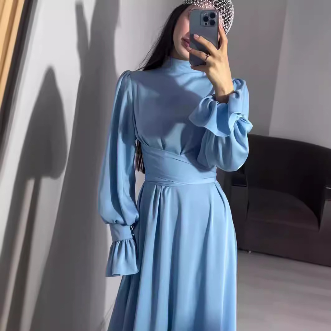 Product information: Fabric name: Polyester Skirt type: A- line skirt Color: light blue, black Size: S,M,L,XL,XXL Skirt length: long skirt Sleeve length: long sleeve Skirt Category: Dress Popular elements: shoulder strap