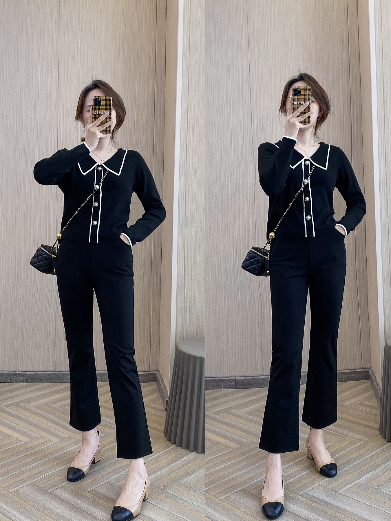 A: Black cropped pants [button zipper style]