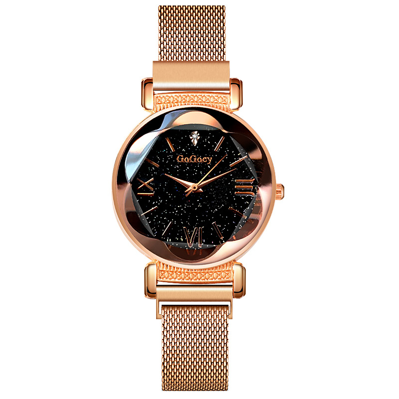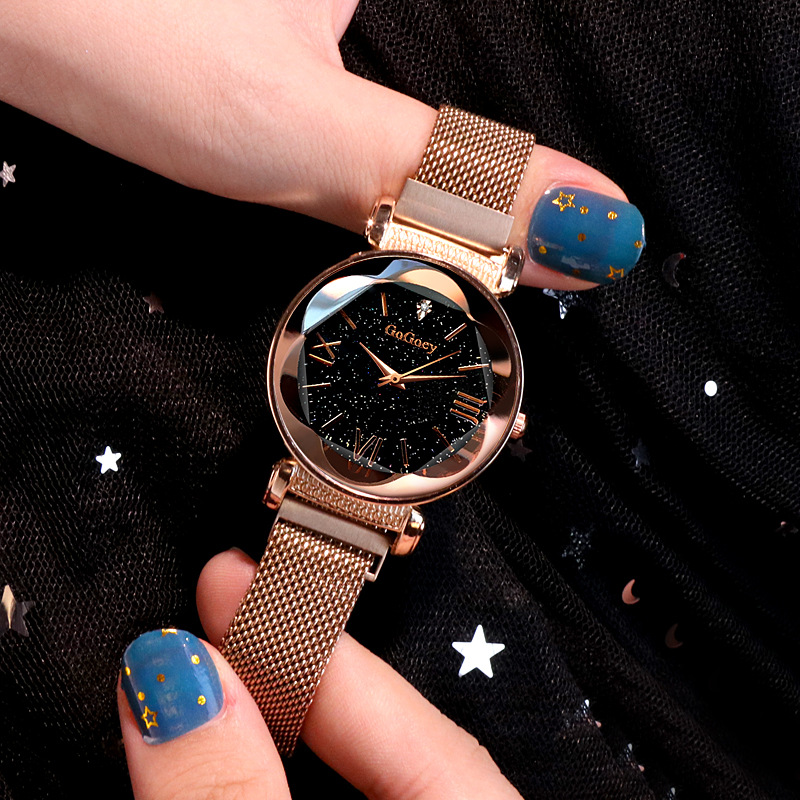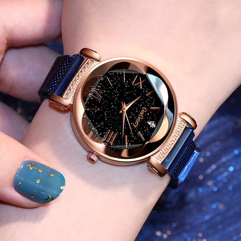 Style: fashionWaterproof: NoMovement type: QuartzThickness: 12mmDial diameter: 34mmMirror material: ordinary glass mirrorBuckle material: alloyColor: purple, blue, black, rose gold