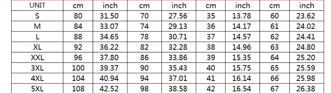 1. Asian sizes are 1 to 2 sizes smaller than European and American people. Choose the larger size if your size between two sizes. Please allow 2-3cm differences due to manual measurement.