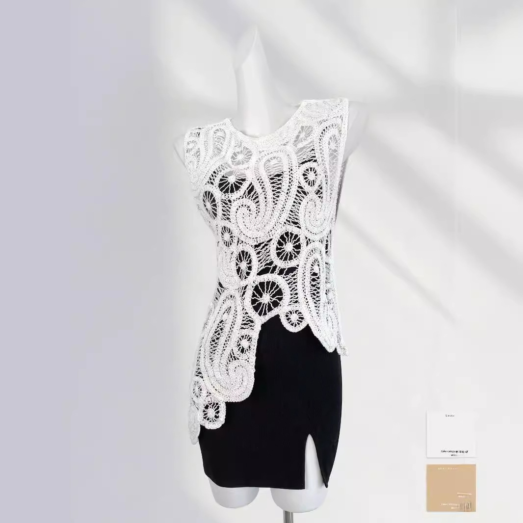 Product information: Color: white【 single shirt], khaki [single shirt], white suit [black suit skirt], khaki [black suit skirt]]]] Size: free size Popular elements: hollow out Fabric name: Blended Style: girly style Craft: knitting