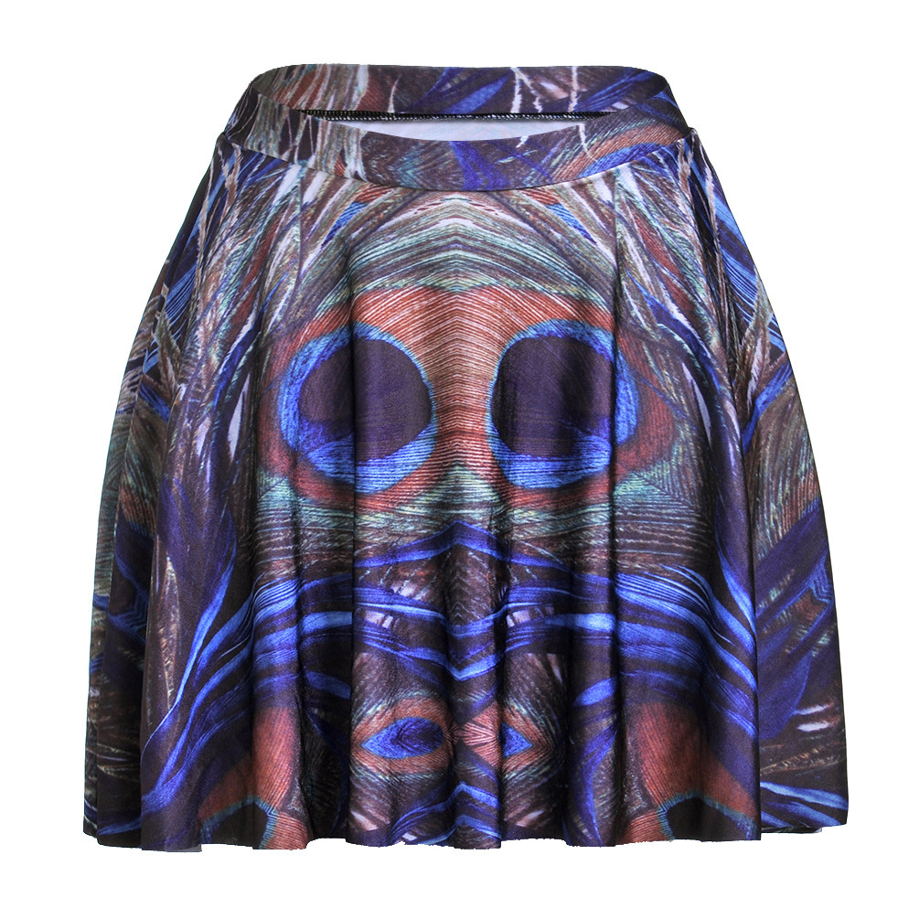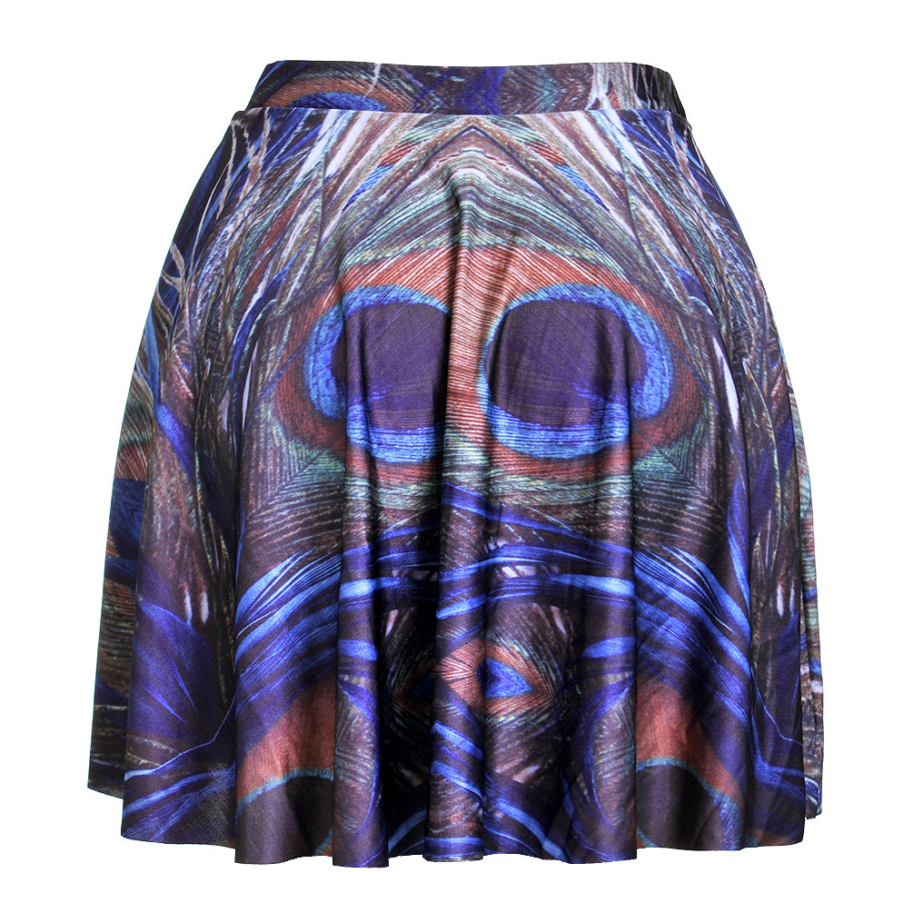 Printed peacock feather pleated skirt