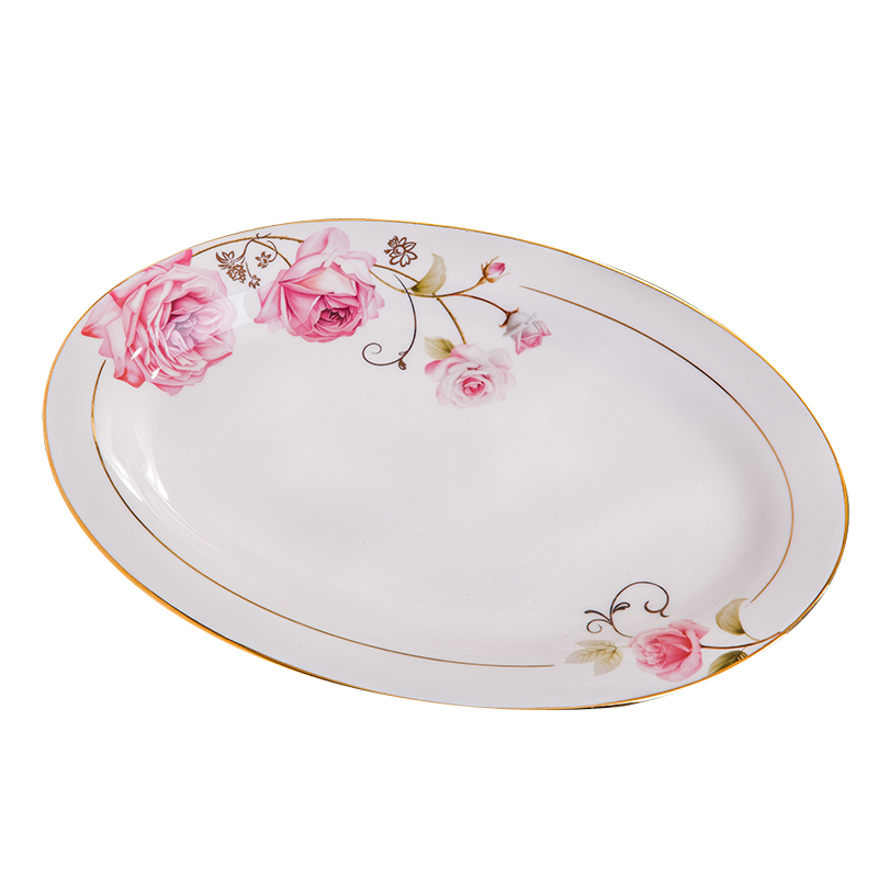 E: Romantic flower and sea fish plate with gold tracery (1 piece)