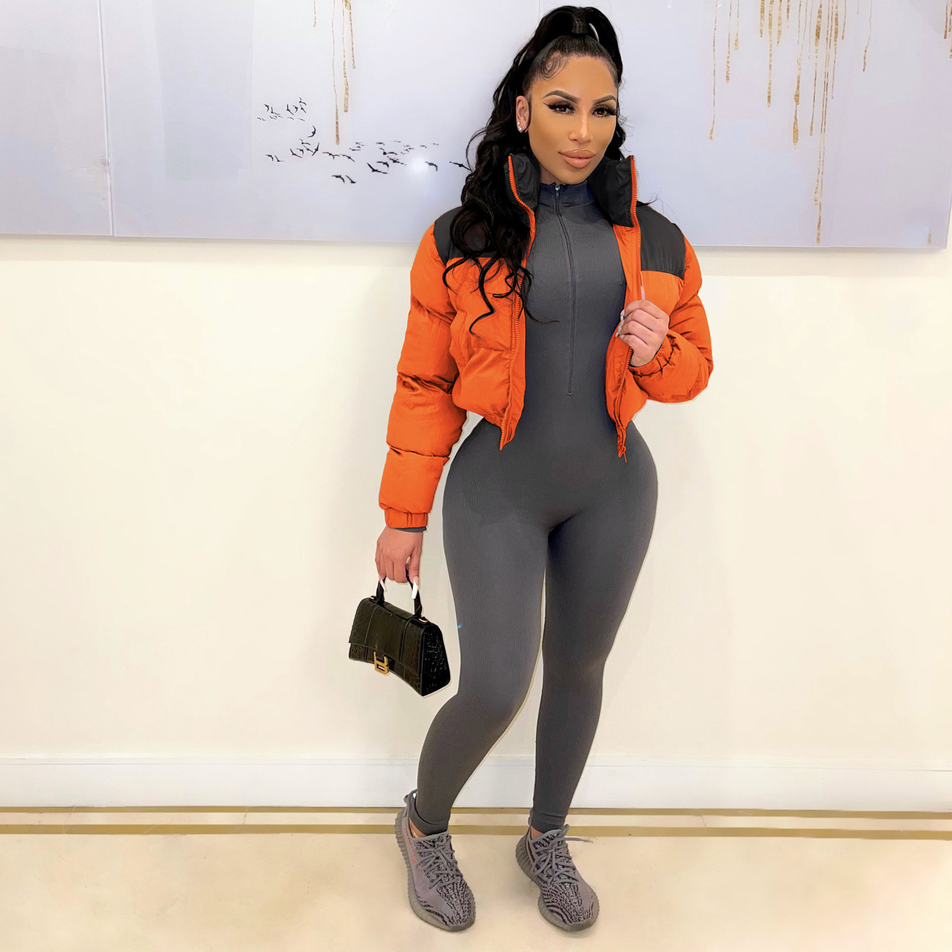 Details of clothing style: zipper, pocket, stitching