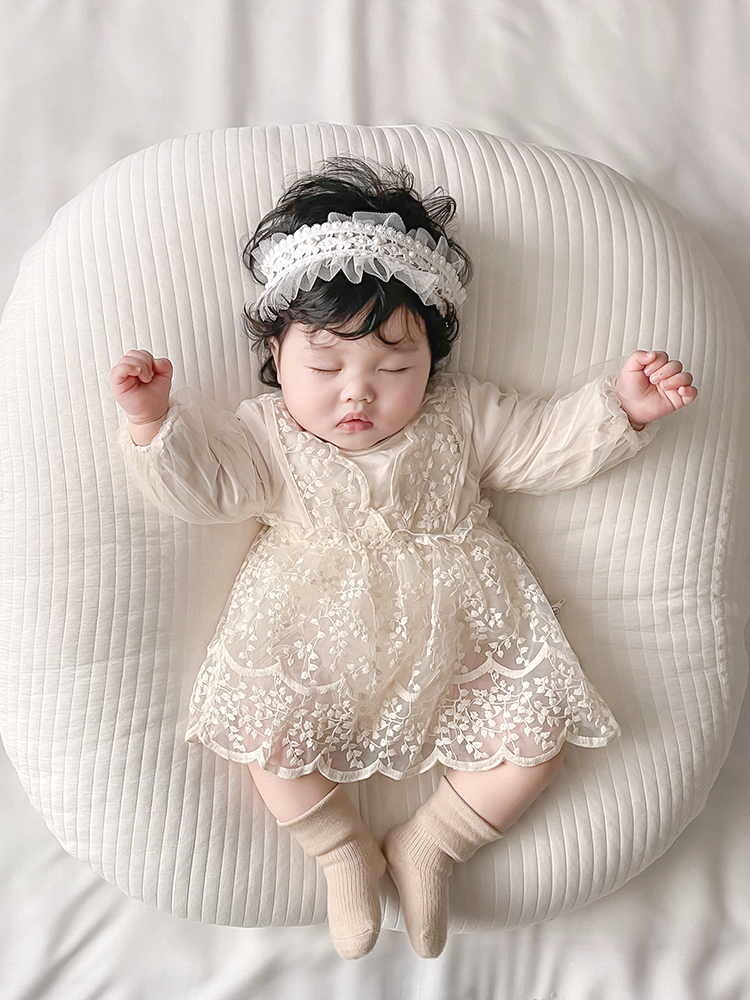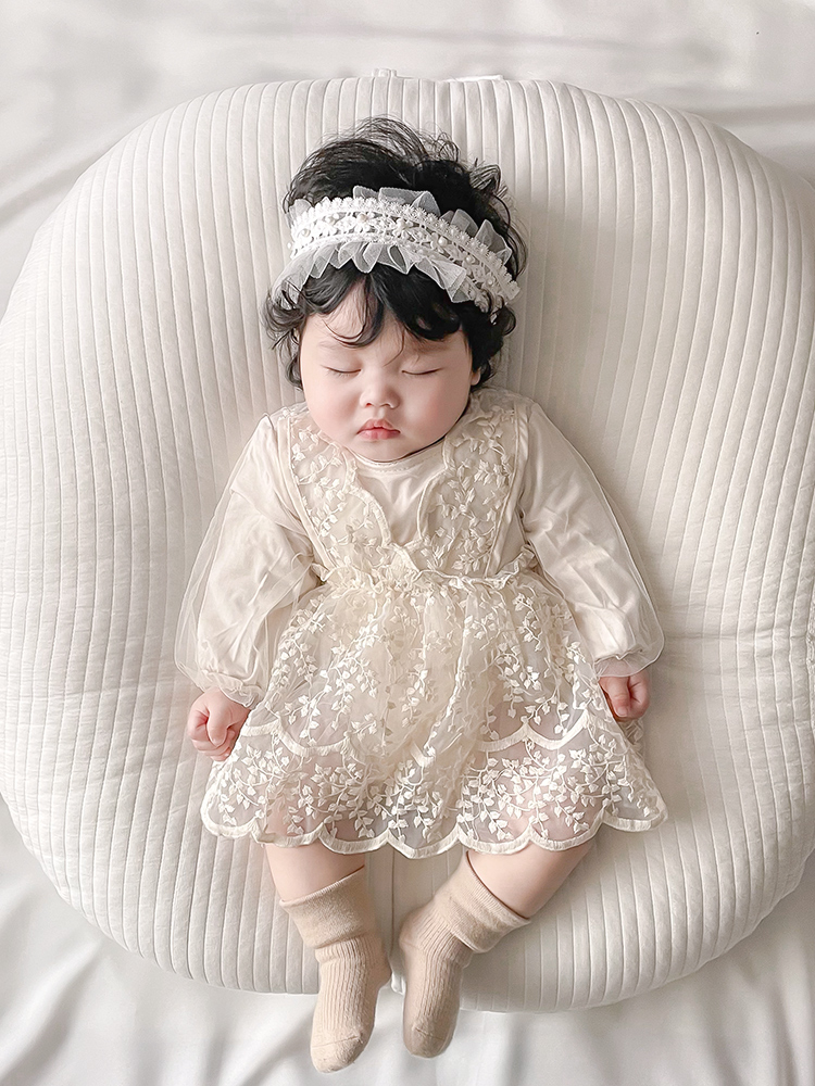 Fabric: cottonStyle: Korean versionWearing a hat or not: NoStyle: triangle climbingSleeve length: long sleeveCategory: skirt, skirt+hair band (two piece set)