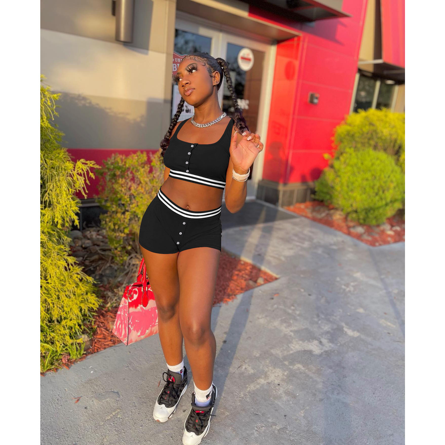 Color: white, black, red, orange red, sky blue