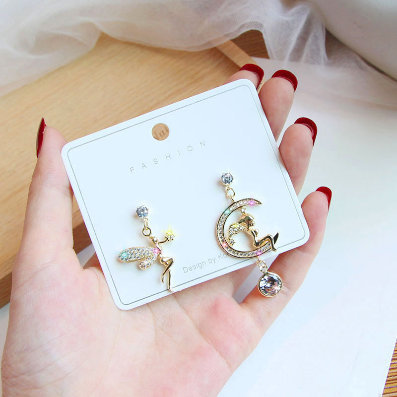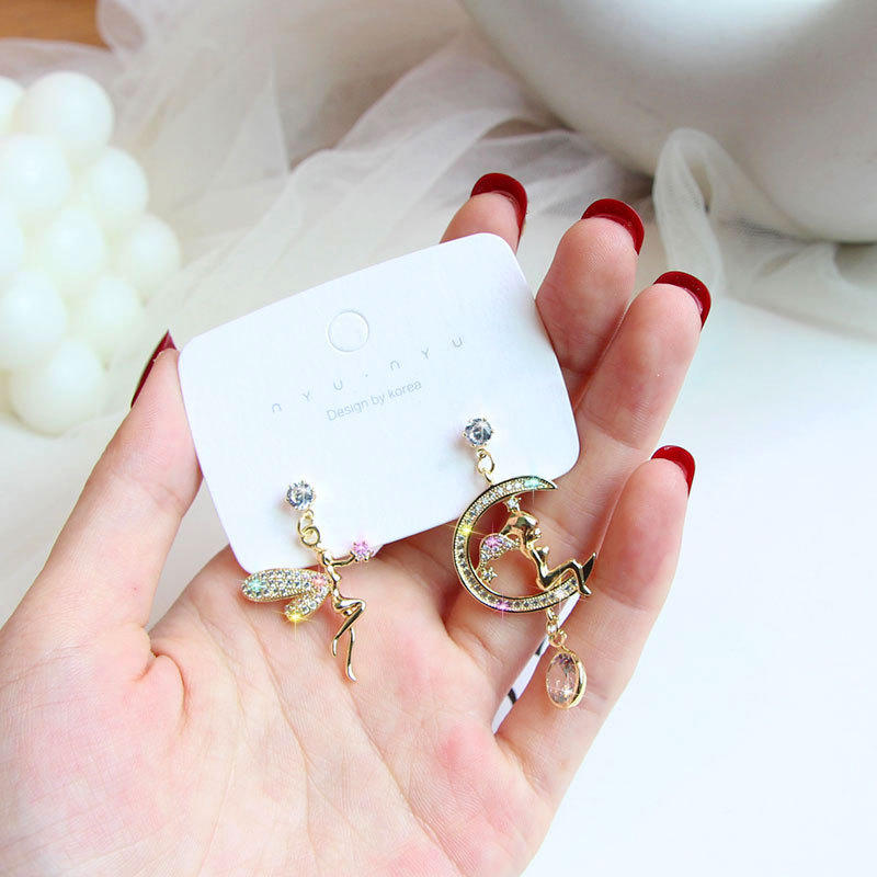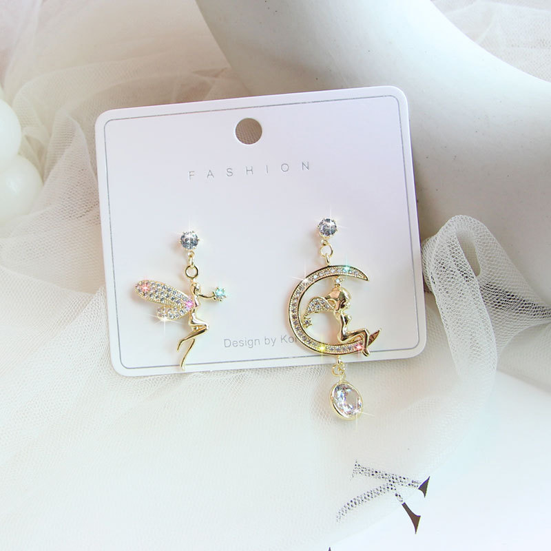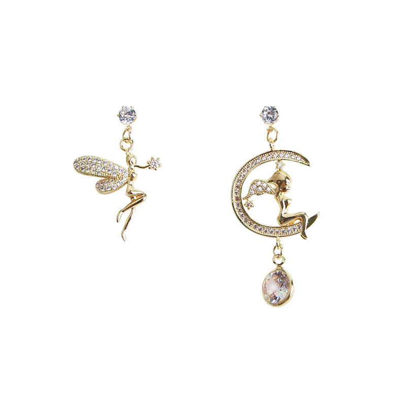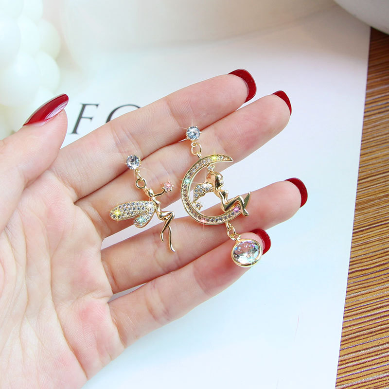 Zircon S925 Silver Needle Full Diamond Earrings Asymmetric