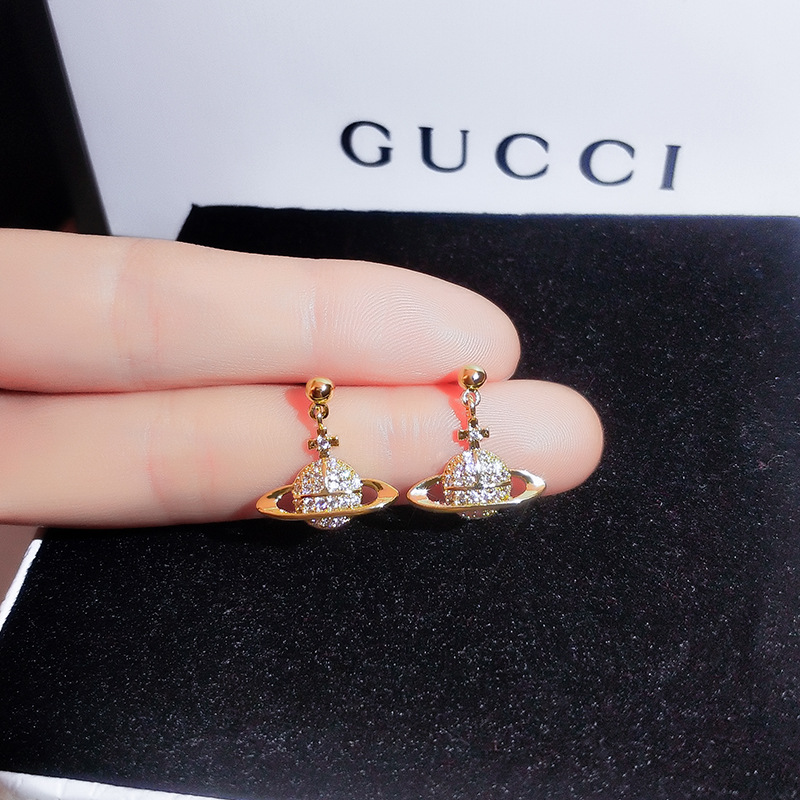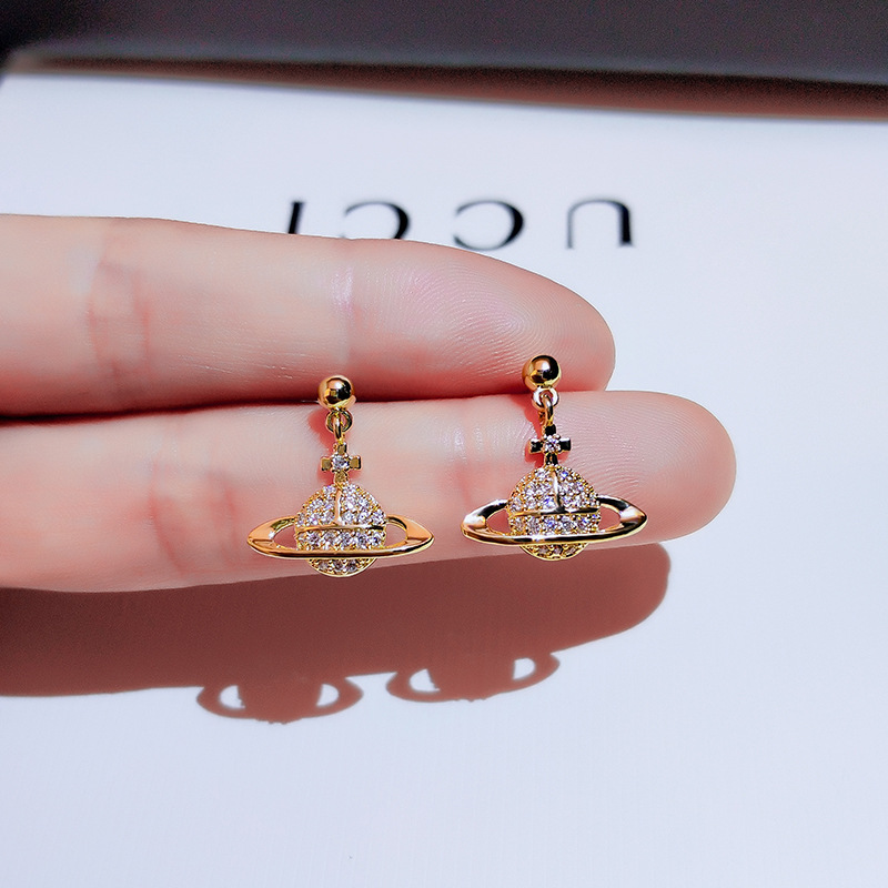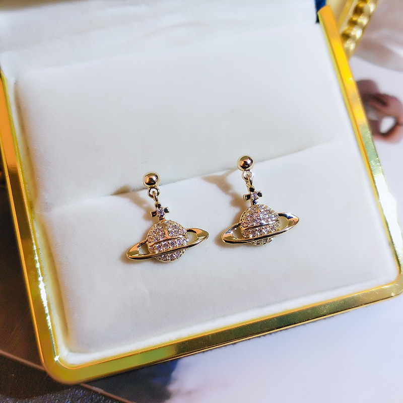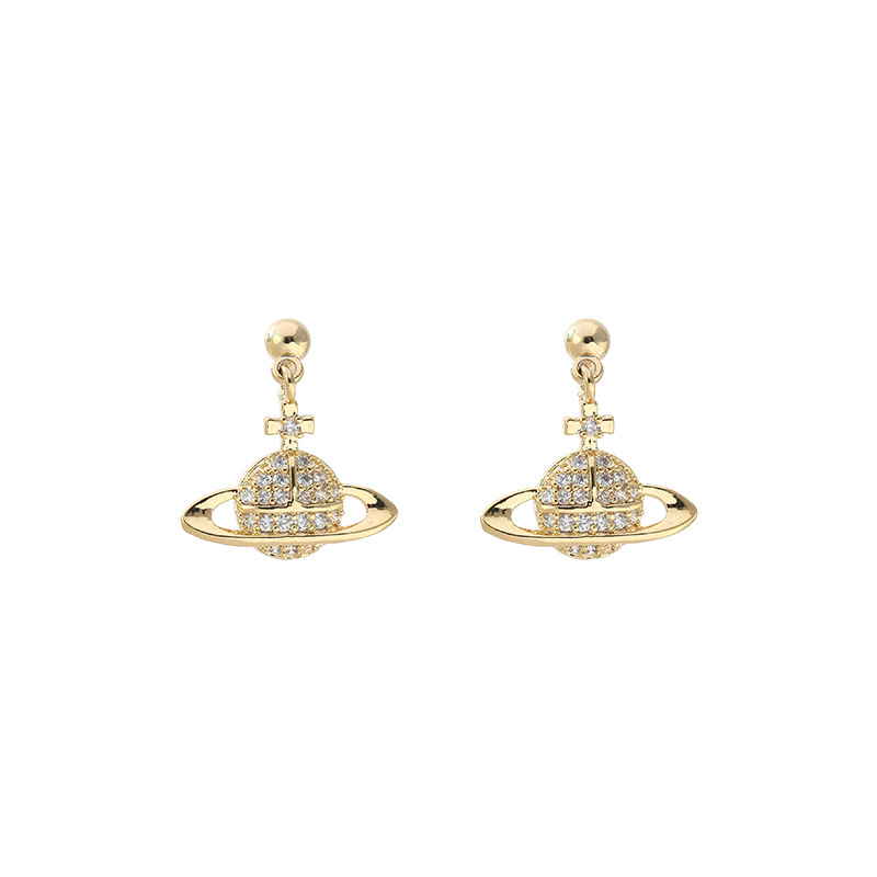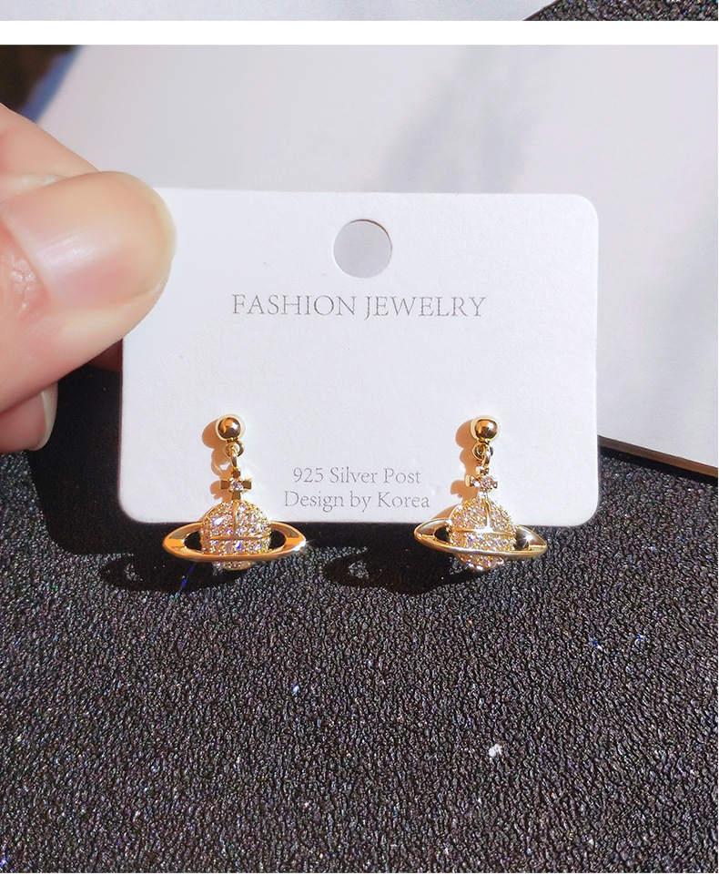 Full diamond planet earrings new trendy fashion net red simple personality earrings female silver needle cold wind earrings
