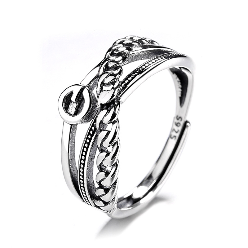 Product information:Type: Ring Color: yfj/About 2.86g Size: adjustable opening Style: Women's Material: Silver Shape: Geometry Popular elements: stripes, retro, letters, geometry, stitching Size Information: ring gem width 0.9cm