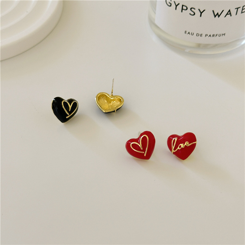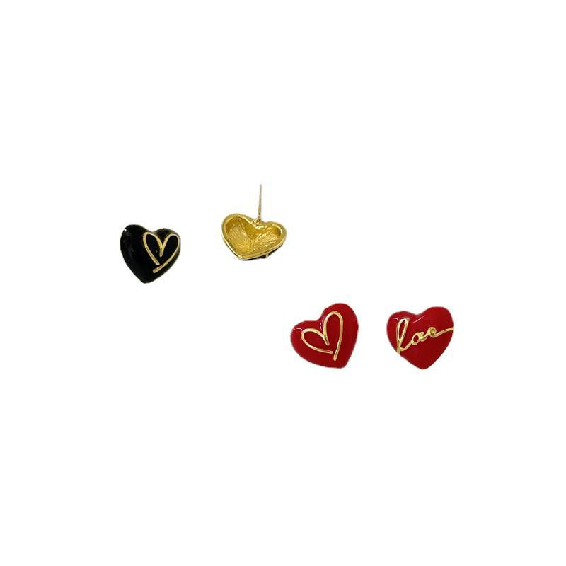 Color: Black peach heart drip glazed love heart earrings, red peach heart drip glazed love heart earrings