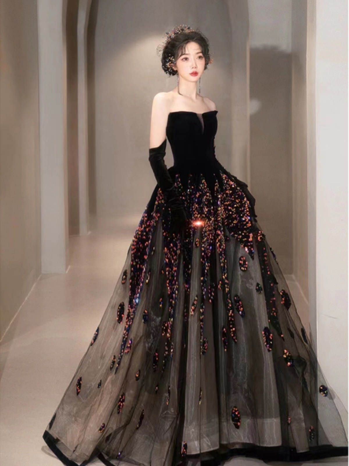 Gown skirt length: long skirt