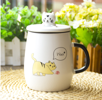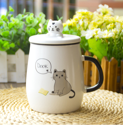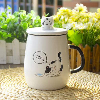Ceramic cup with lid with spoon cartoon cup creative mug cute Korean student drinking water cat cup
