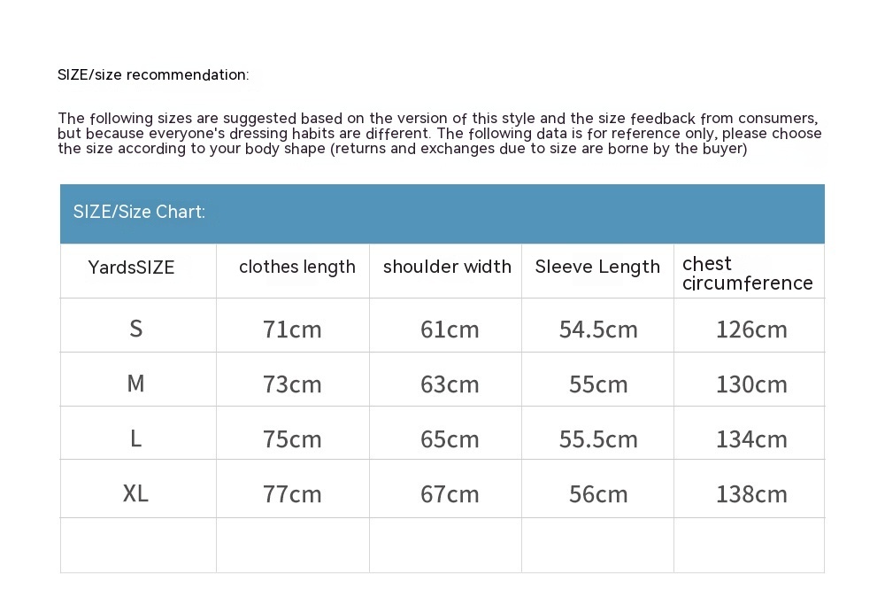 1. Asian sizes are 1 to 2 sizes smaller than European and American people. Choose the larger size if your size between two sizes. Please allow 2-3cm differences due to manual measurement. 2. Please check the size chart carefully before you buy the item, if you don't know how to choose size, please contact our customer service. 3.As you know, the different computers display colors differently, the color of the actual item may vary slightly from the following images.