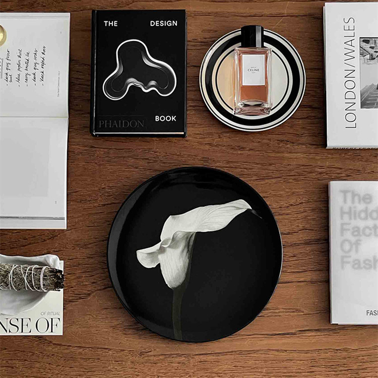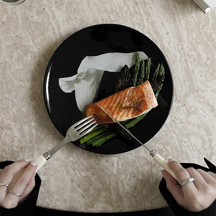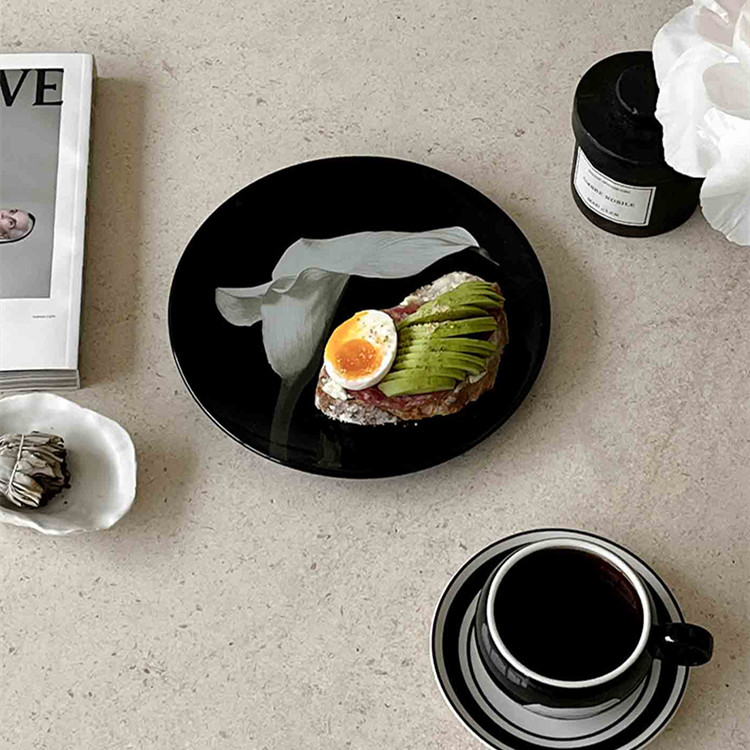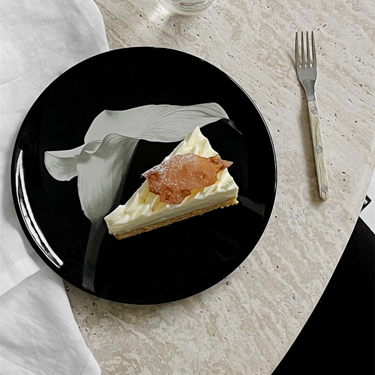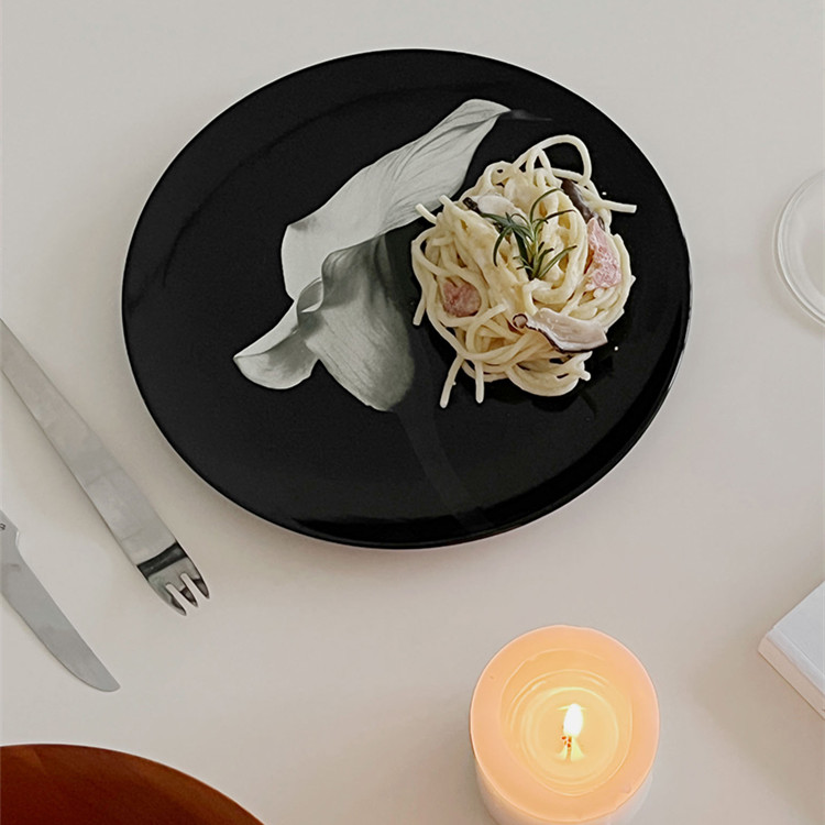Material: New bone chinaPattern: Plants and flowersStyle: Nordic styleShape: roundColor classification: Calla lily ceramic plateTableware craftsmanship: glaze in colorSize: 9.5 inches
