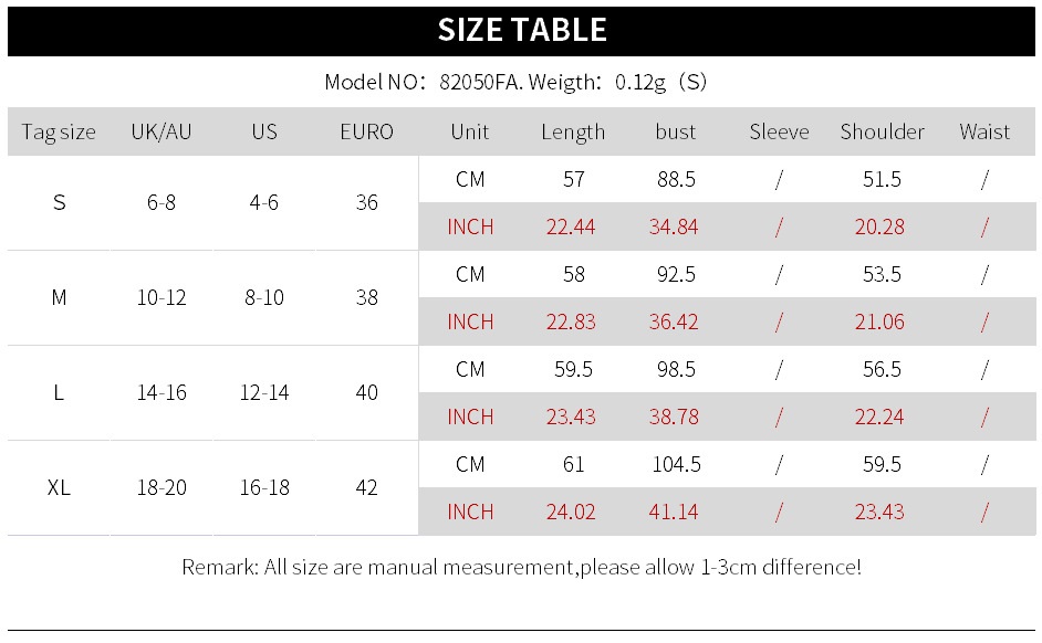1. Asian sizes are 1 to 2 sizes smaller than European and American people. Choose the larger size if your size between two sizes. Please allow 2-3cm differences due to manual measurement. 2. Please check the size chart carefully before you buy the item, if you don't know how to choose size, please contact our customer service. 3.As you know, the different computers display colors differently, the color of the actual item may vary slightly from the following images.