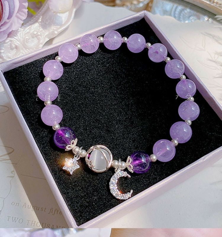 Color: natural opal gray moonlight Xingyue bracelet 1, natural opal lavender Xingyue bracelet 2, natural opal girl pink Xingyue bracelet 3, natural opal blue Xingyue bracelet 4, White Jade Gray Moonlight Xingyue bracelet (glass bead), amethyst Xingyue bracelet 6 (glass bead), pink Crystal strawberry quartz Xingyue bracelet (glass bead), White plus blue color mix moon XINGX bracelet (glass bead)