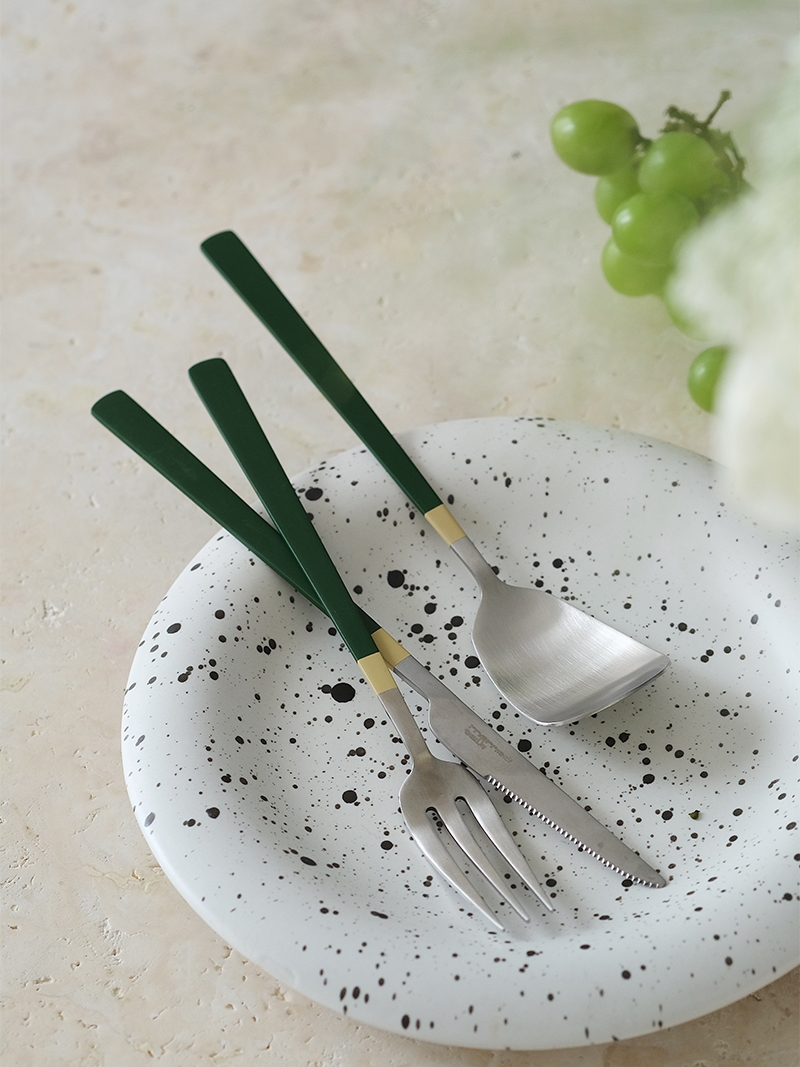 Color classification: Cream rice knife, cream rice fork, cream rice spoon, cream rice knife and fork spoon, three sets of retro green knife, retro green fork, retro green spoon, retro green knife and fork spoon, three-piece set of cheese yellow knife, cheese yellow fork, cheese yellow spoon, cheese yellow knife Fork and spoon three-piece set