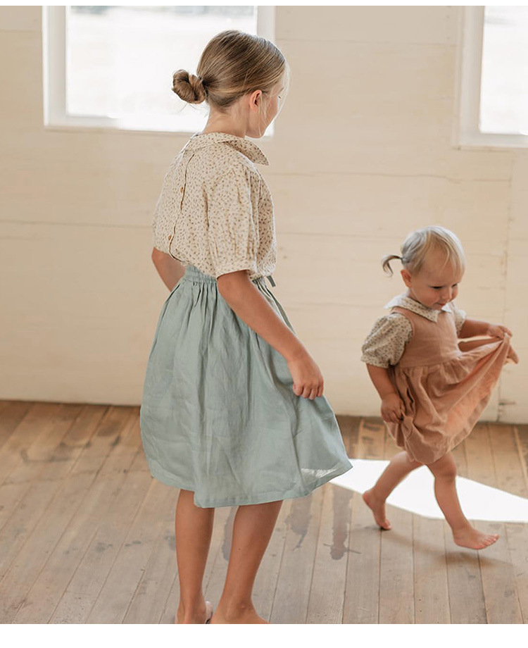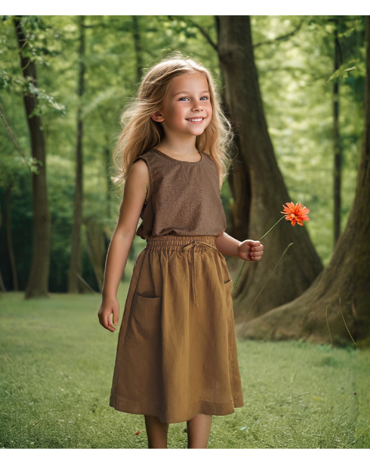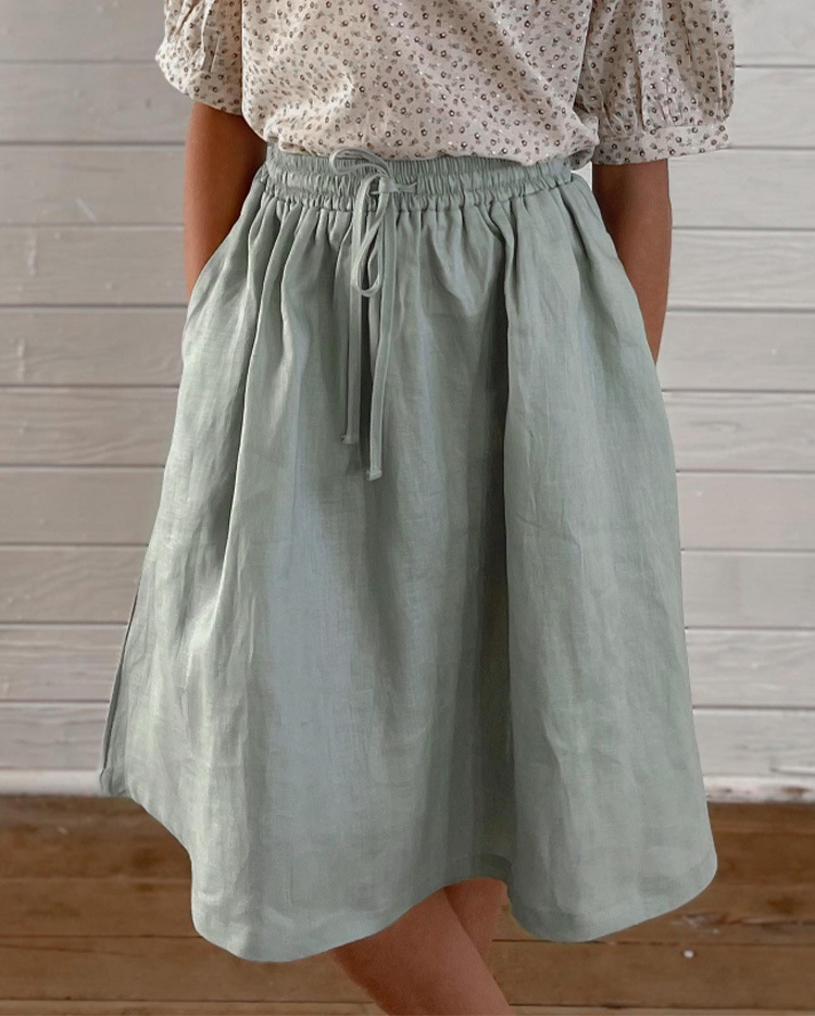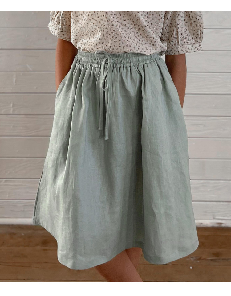 Product information: Pattern: solid color Color: khaki, gray and blue Suitable height: 90cm,100cm,110cm,120cm,130cm Style: A- line skirt Fabric name: hemp blended Main fabric composition: lyocell Style: Mori girl Skirt style: A- line skirt