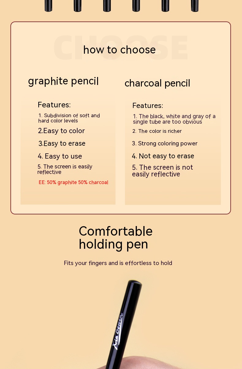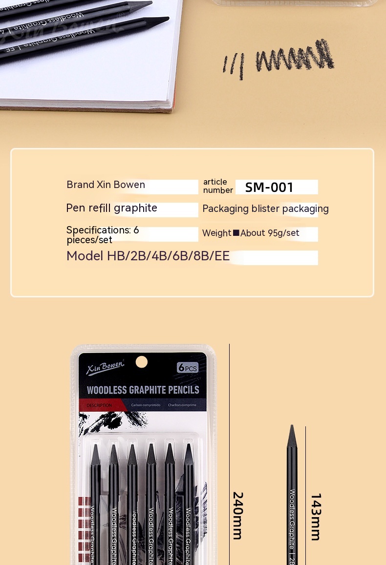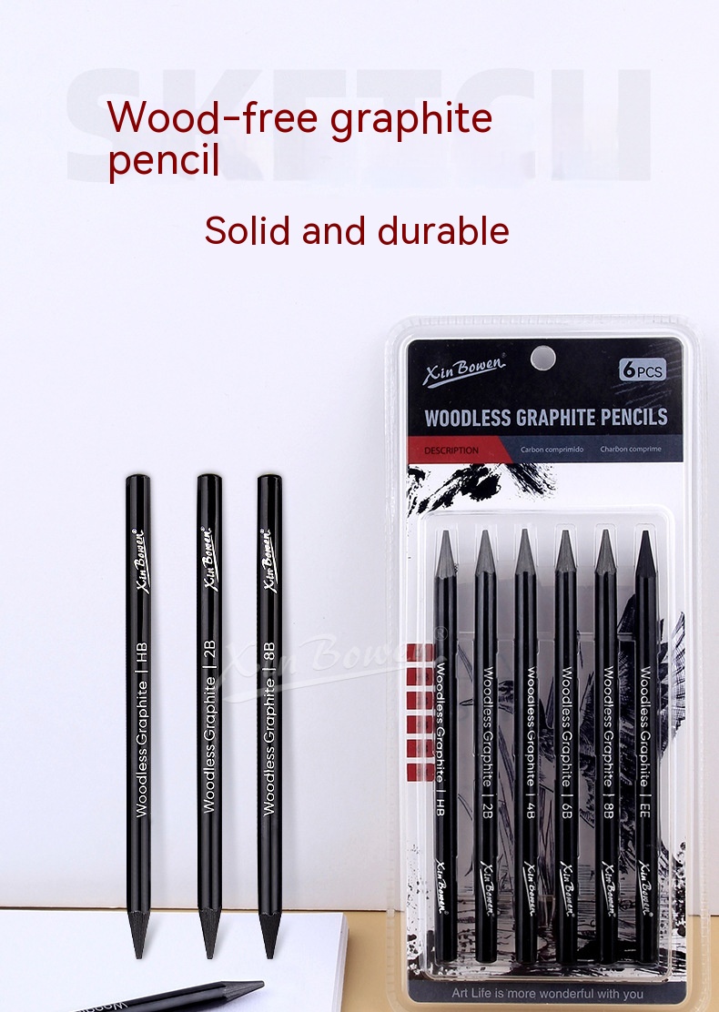 Wood-free Graphite Full Lead Sketching Pencil 6 PCs Suit For Art