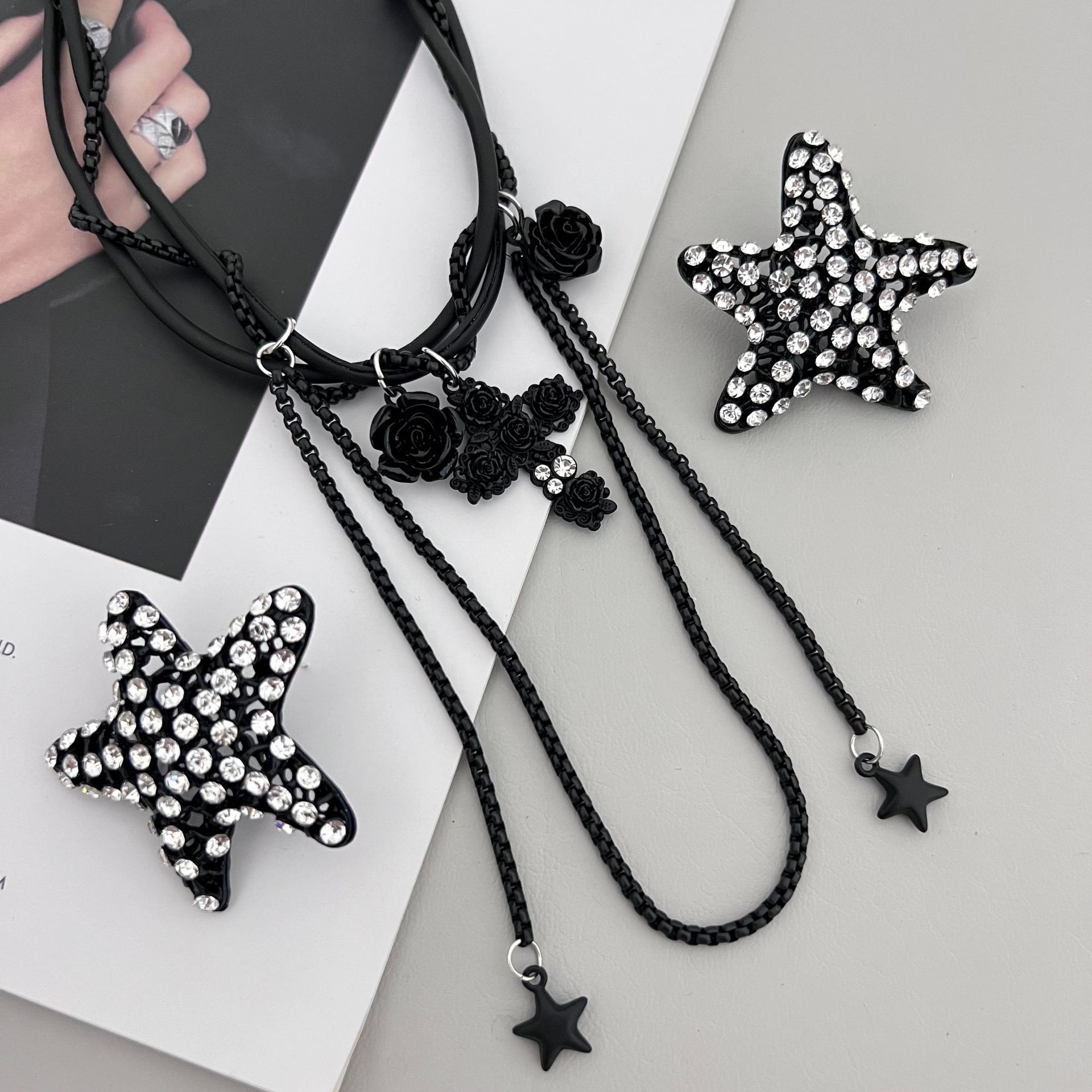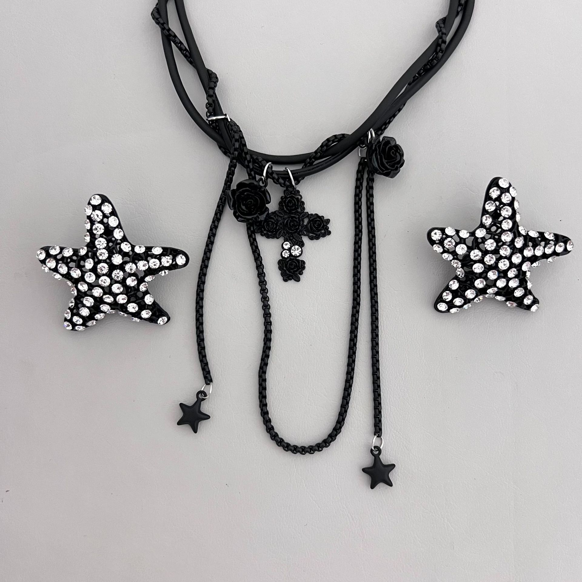 Product information:Treatment Process: Electroplating Color: earrings, necklace Material: Alloy Shape: Star Popular elements: Cross, tassel, five-pointed star