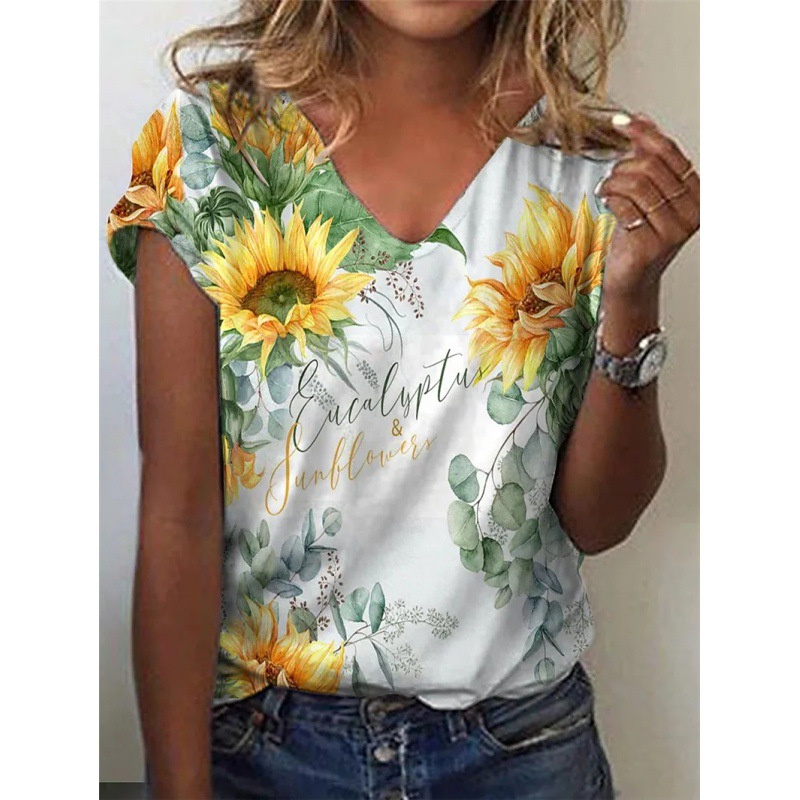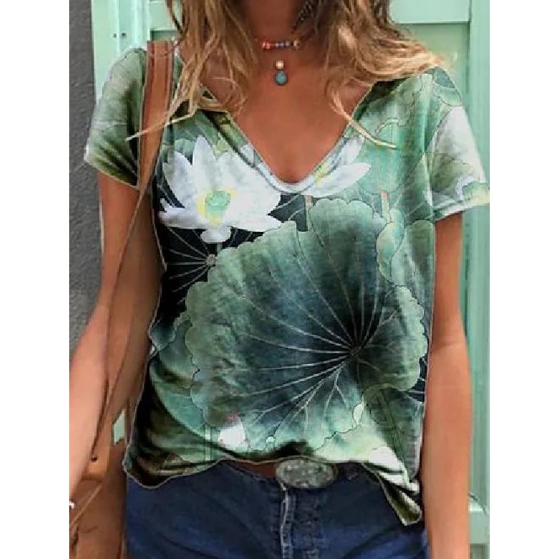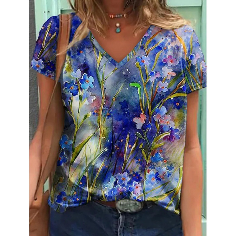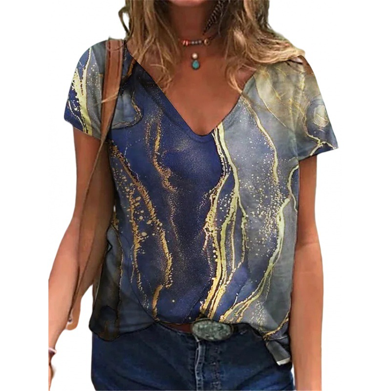 Abstract Painting T-Shirt Graphic Geometric Print V-Neck