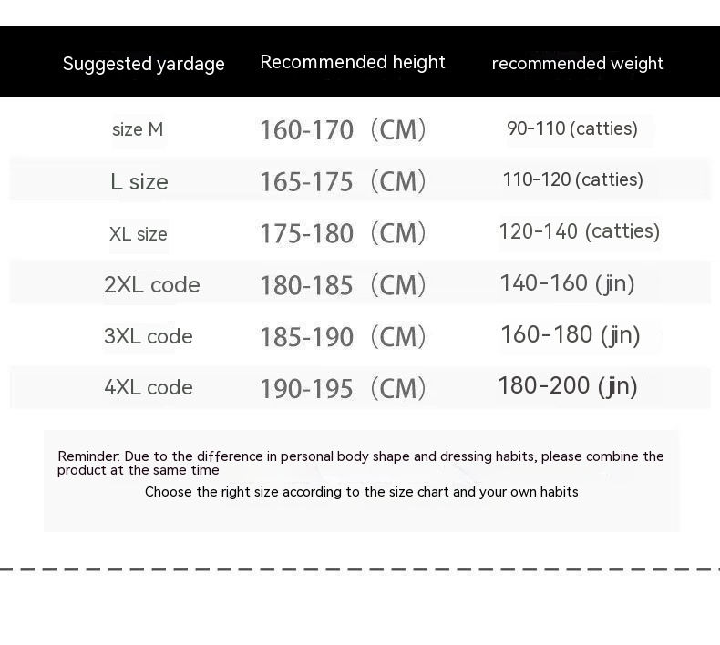 Size: M 85kg-115kg, L 116kg-127kg, XL 128kg-140kg, 2XL 141kg-160kg, 3XL 161kg-175kg, 4XL 176kg-200kg