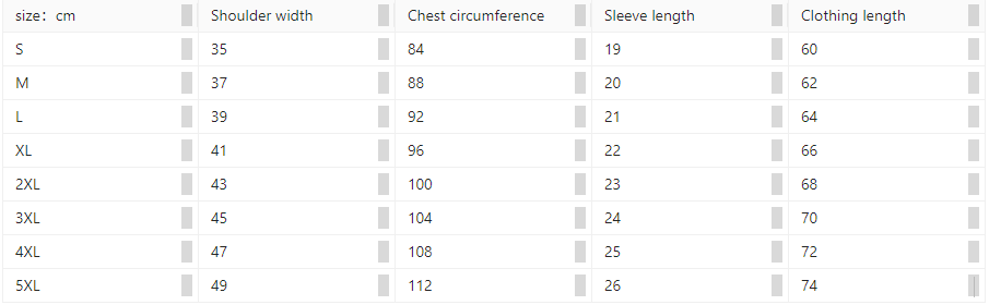 Sizes: M, L, XL, XXL, 3XL, 4XL, 5XL
