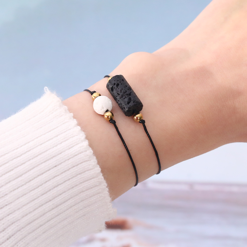Material: volcanic stone, stainless steel beadsTreatment process: ManualType: BraceletStyle: LoversShape: round bead, long column, rice beadHealth care function: anti fatigueTessellation material: not tessellatedSeries: card Bracelet