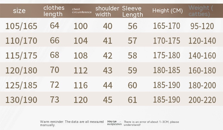 Size: 165 [recommend 47.50kg-70.00kg],170 [recommend],175 [recommend 70.00kg-80.00kg],180 [recommend 80.00kg-90.00kg],185 [recommend 90.00kg-100.00kg]]
