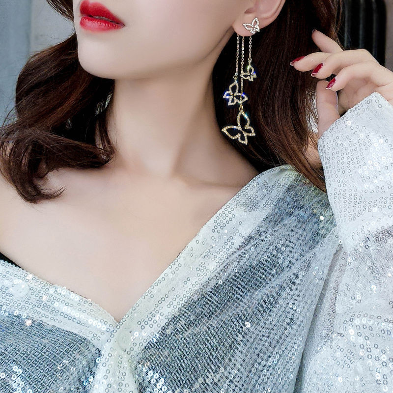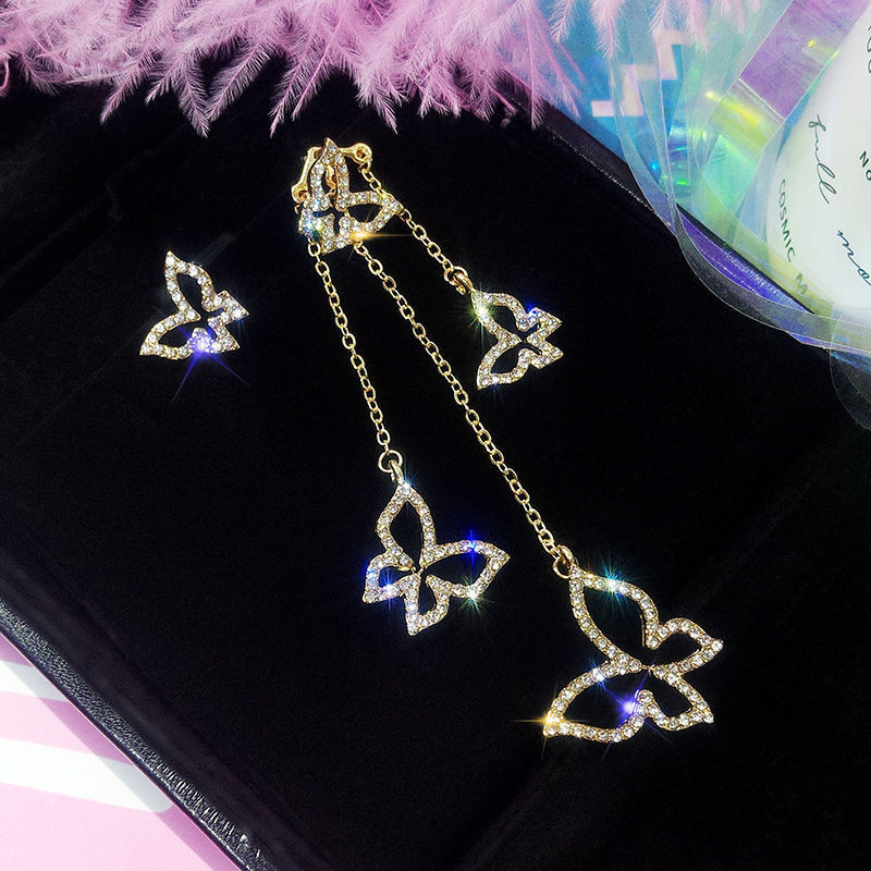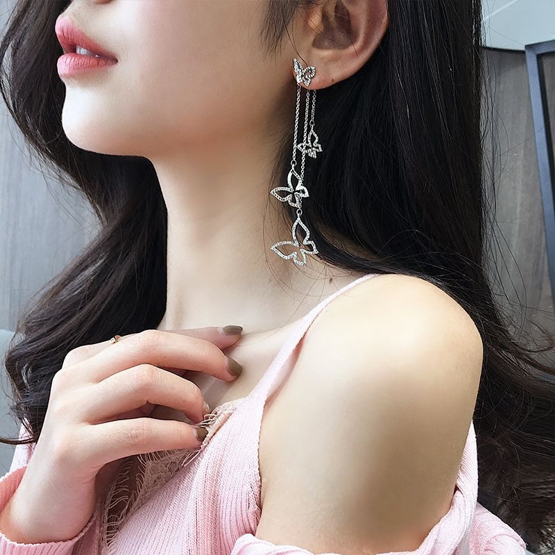 925 Silver Needle Butterfly Asymmetrical Earrings with Diamonds
