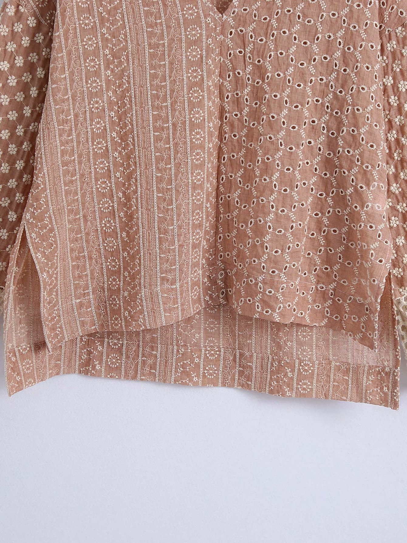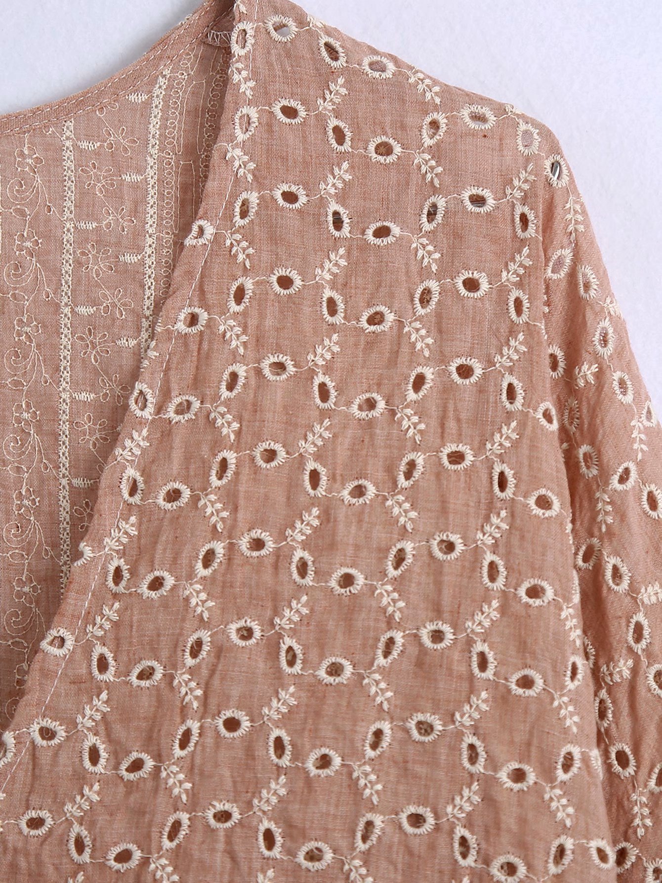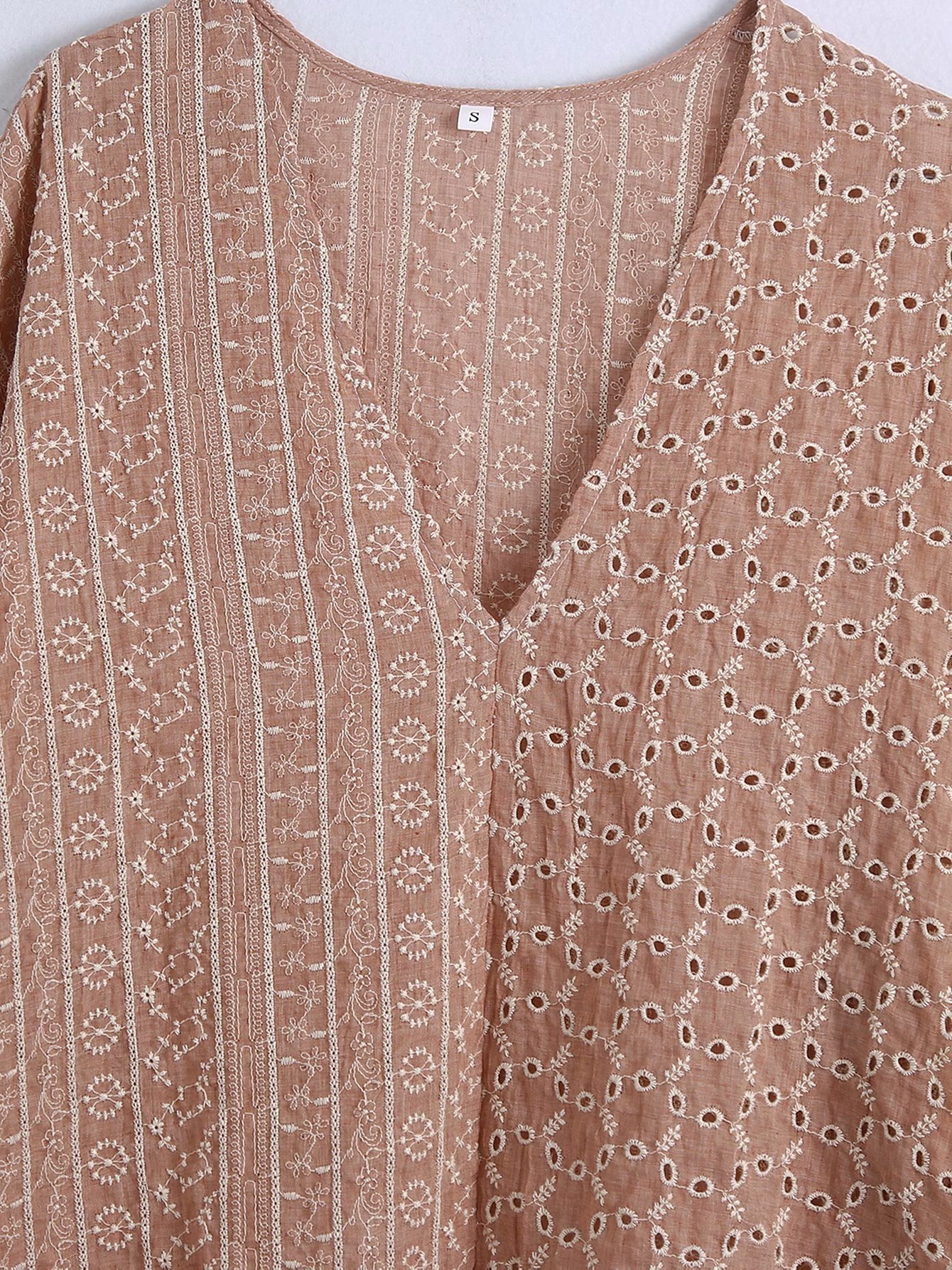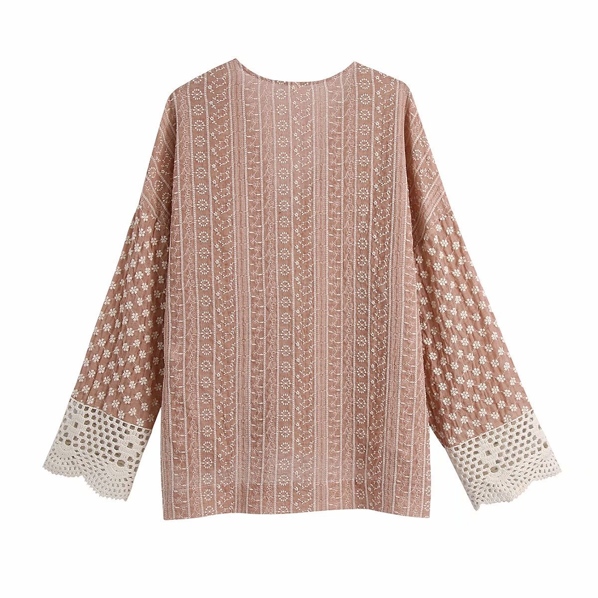 Product informationSleeve length: long sleeveCraft: Embroidery/embroideryItem No.: 3301Place of Origin: ChangshuCollar type: V-neckSleeve type: conventional sleeveColor: pinkSize informationSize: XS,S,M,LPacking listLong sleeve x1