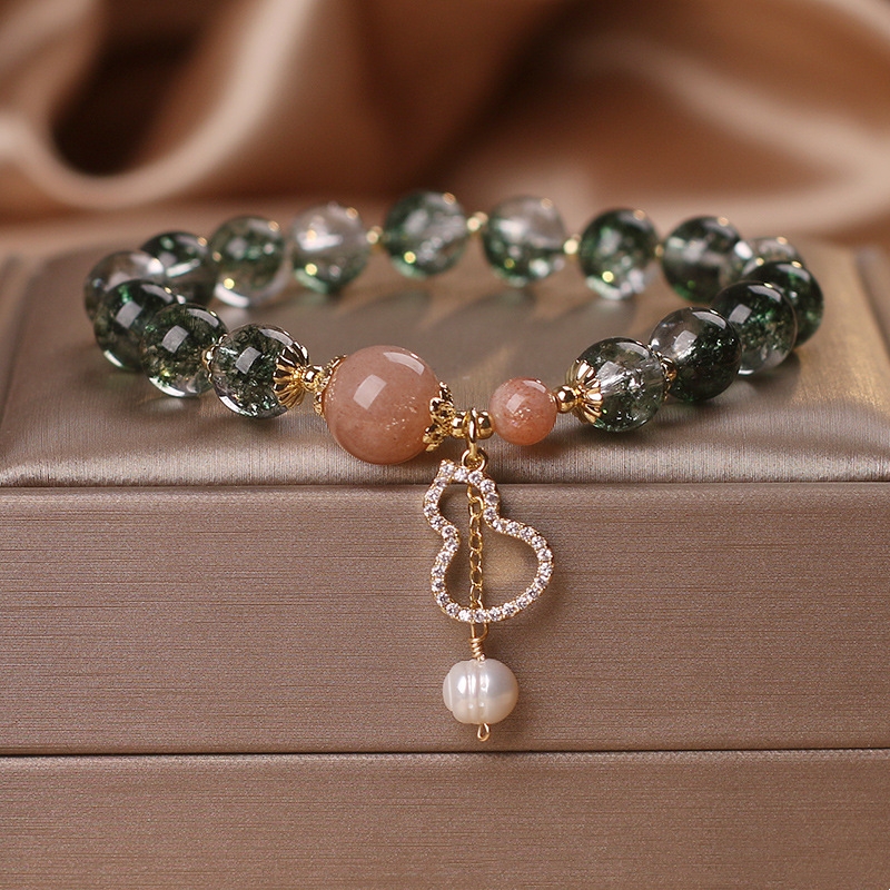 Special-interest Design Green Phantom Quartz Crystal Bracelet Female Fu Lu Gourd