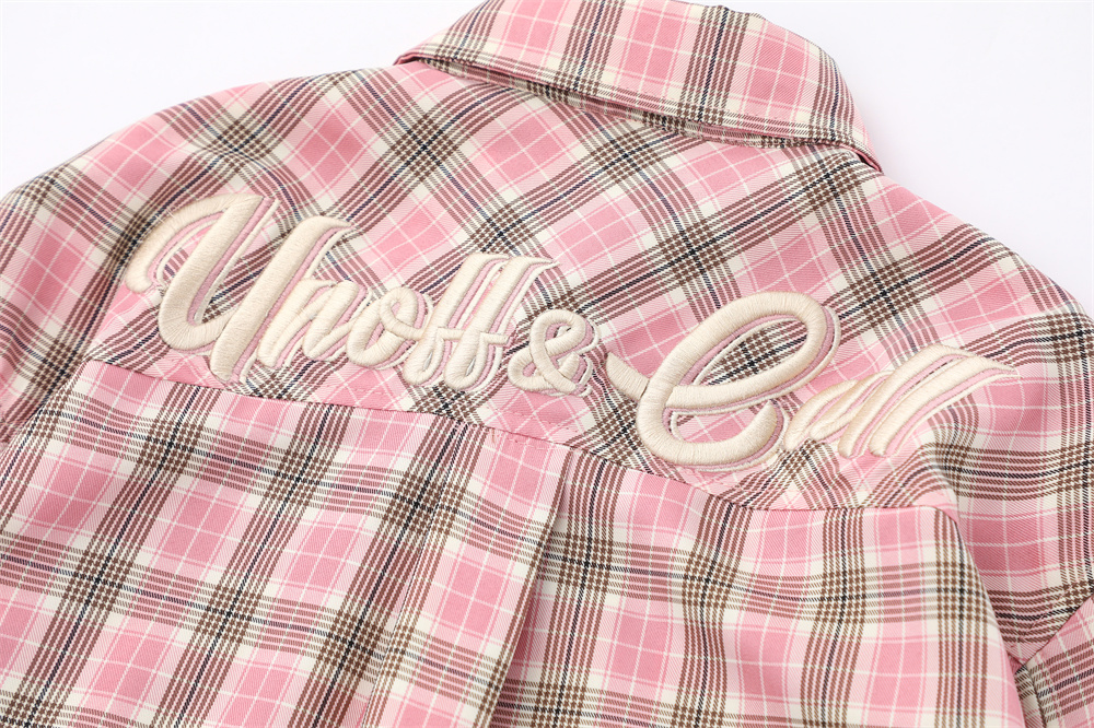 Product information: Pattern: Plaid Color: black, pink Size: S,M,L,XL Style: Cardigan Fabric name: Chemical Fiber blend Applicable scenarios: Leisure Main fabric composition: Polyester Fiber Style: Street Craft: Embroidery