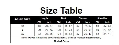 1. Asian sizes are 1 to 2 sizes smaller than European and American people. Choose the larger size if your size between two sizes. Please allow 2-3cm differences due to manual measurement. 2. Please check the size chart carefully before you buy the item, if you don't know how to choose size, please contact our customer service. 3.As you know, the different computers display colors differently, the color of the actual item may vary slightly from the following images.