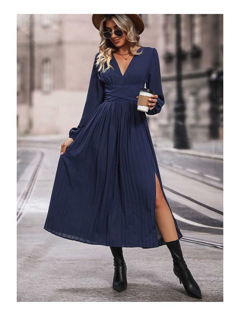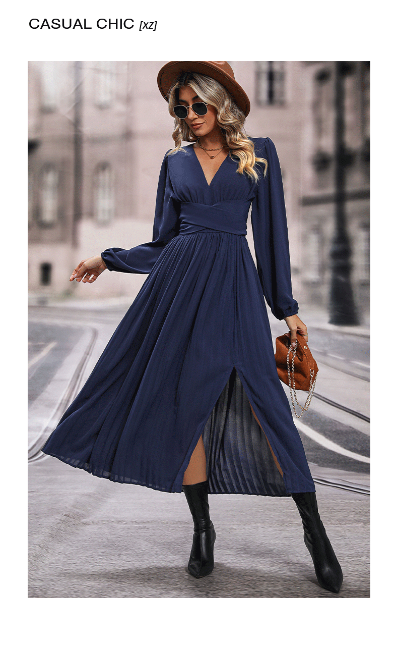 Product information: Color: Sapphire Blue Size: S,M,L,XL Popular elements: pleated Style: Basic Main fabric composition: Polyester Style: Elegant style Craft: collage/stitching