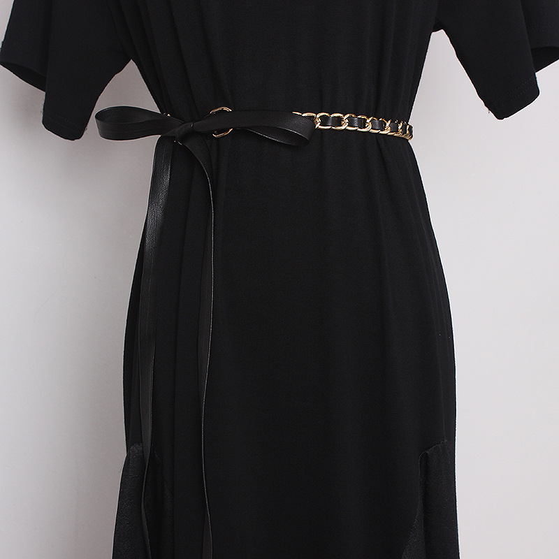 Applicable gender: femalePopular elements: bowMaterial: Alloy + PU leatherColor: black/gold, leather rope and waist chainSize: Full length 198CM, leather width 1.5CM, main chain length 70CM, width 1.2 CM