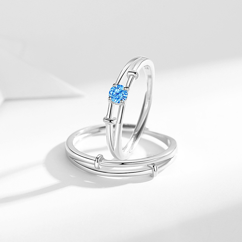 Product information:Color: Z62 men's ring without Diamond, Z62 women's ring with Blue Diamond Size: adjustable opening Material: Silver Shape: Geometry Popular elements: Lines