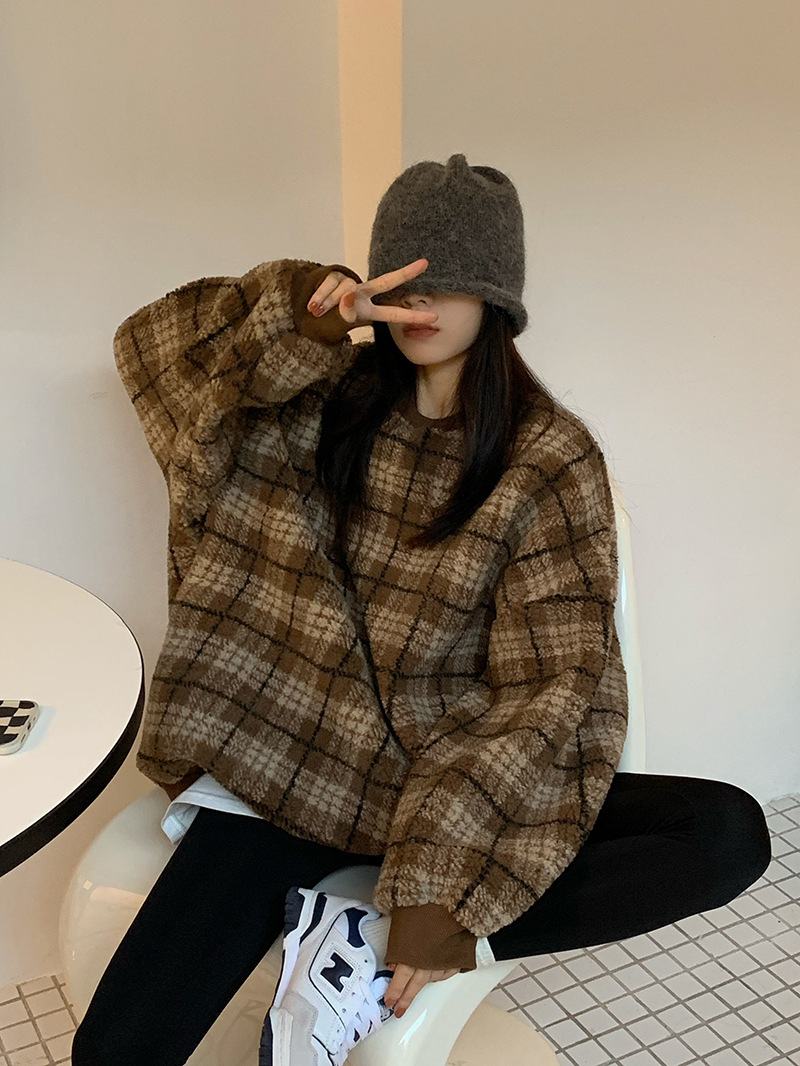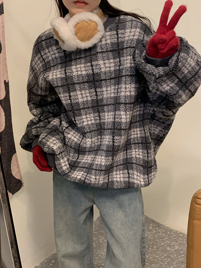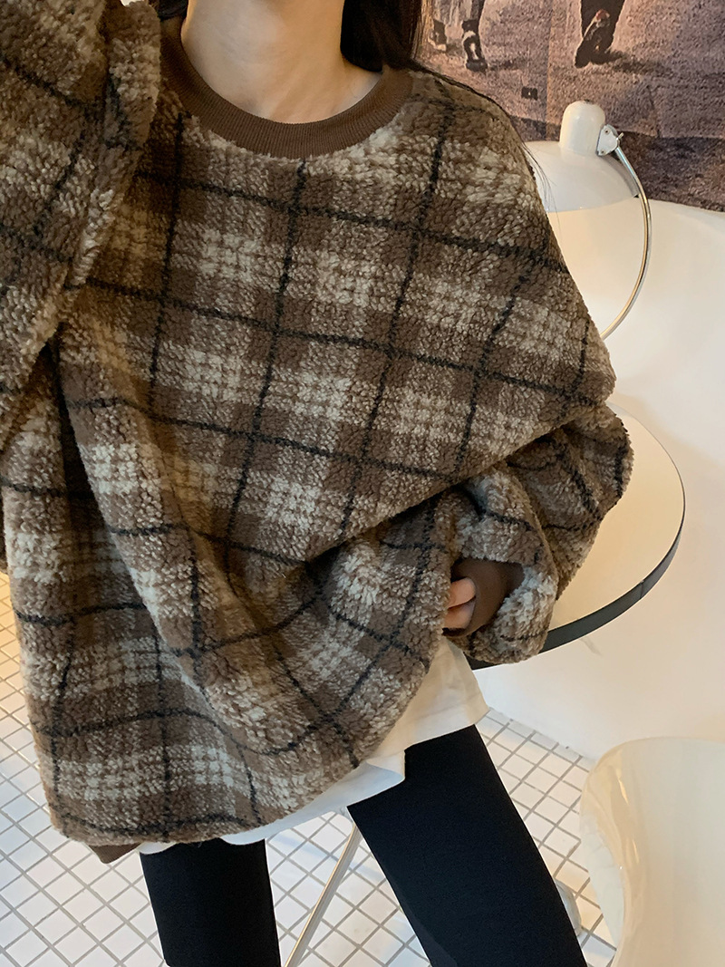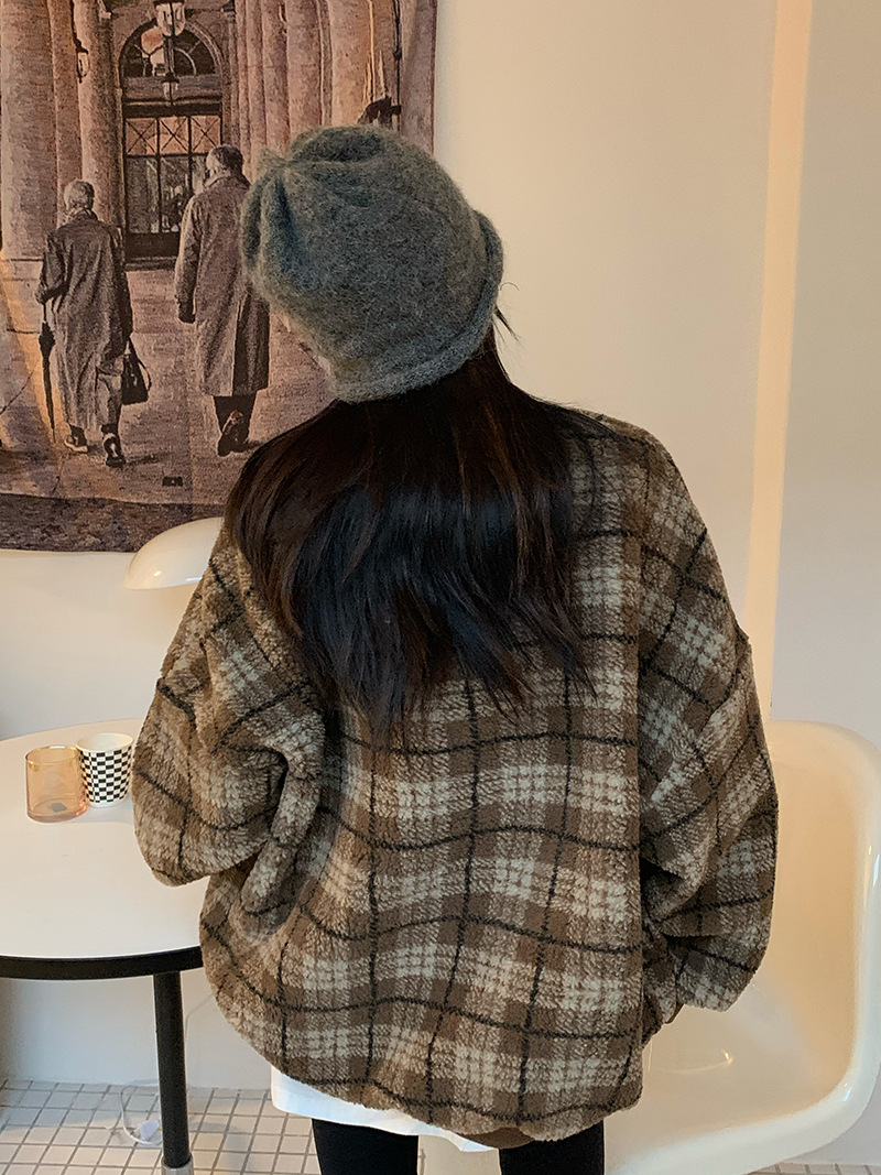 Color: gray check lamb wool, coffee color check lamb wool