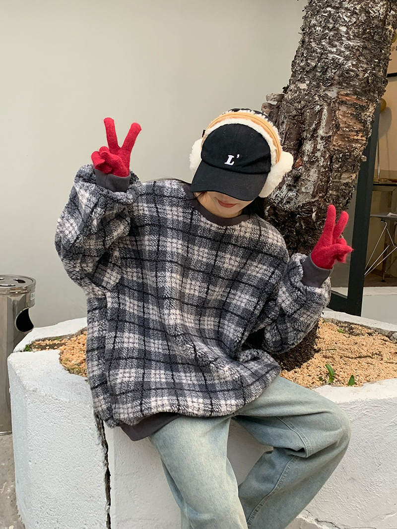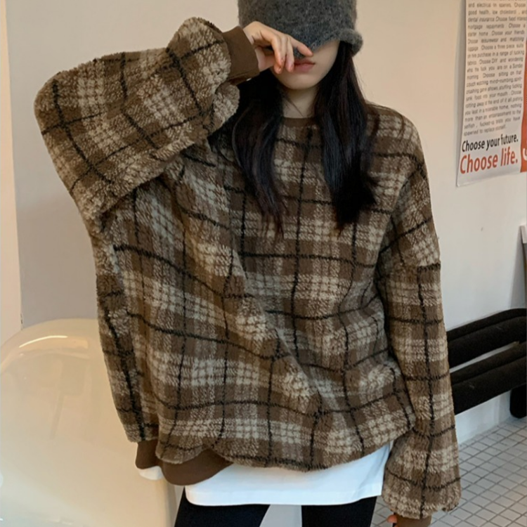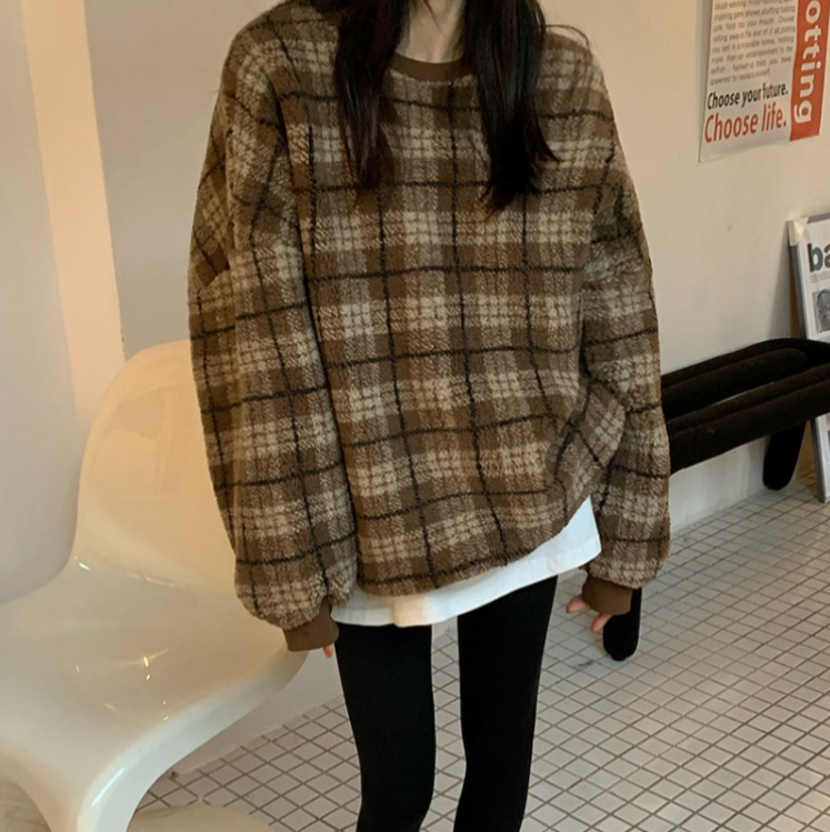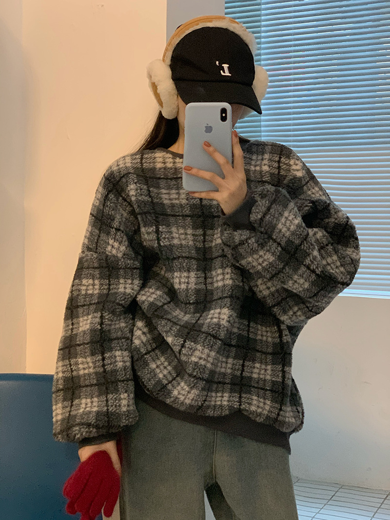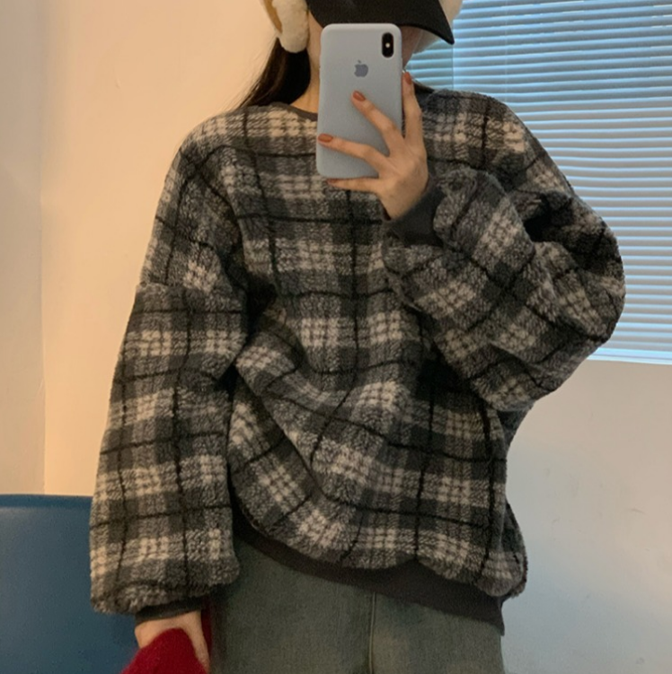 Color: gray check lamb wool, coffee color check lamb wool