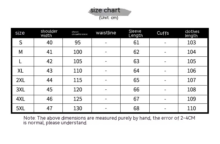 1. Asian sizes are 1 to 2 sizes smaller than European and American people. Choose the larger size if your size between two sizes. Please allow 2-3cm differences due to manual measurement. 2. Please check the size chart carefully before you buy the item, if you don't know how to choose size, please contact our customer service. 3.As you know, the different computers display colors differently, the color of the actual item may vary slightly from the following images.