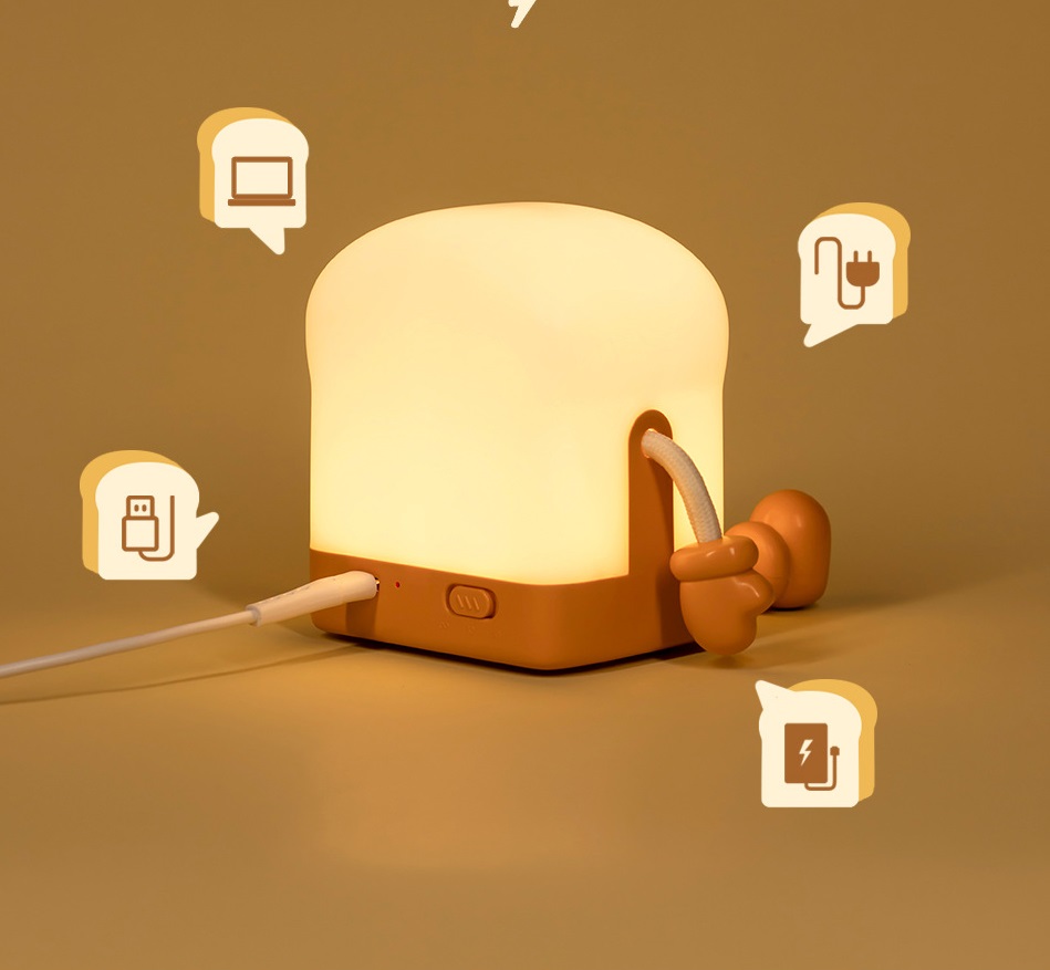 Toast Small Midnight Light Bedroom Dormitory Bedside Light Sleep Soft Light Eye Protection Charging Timing Companion Sleeping Light
