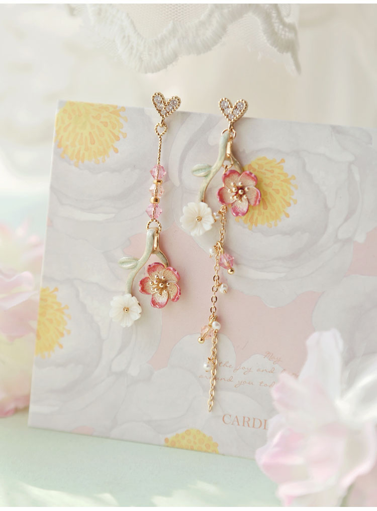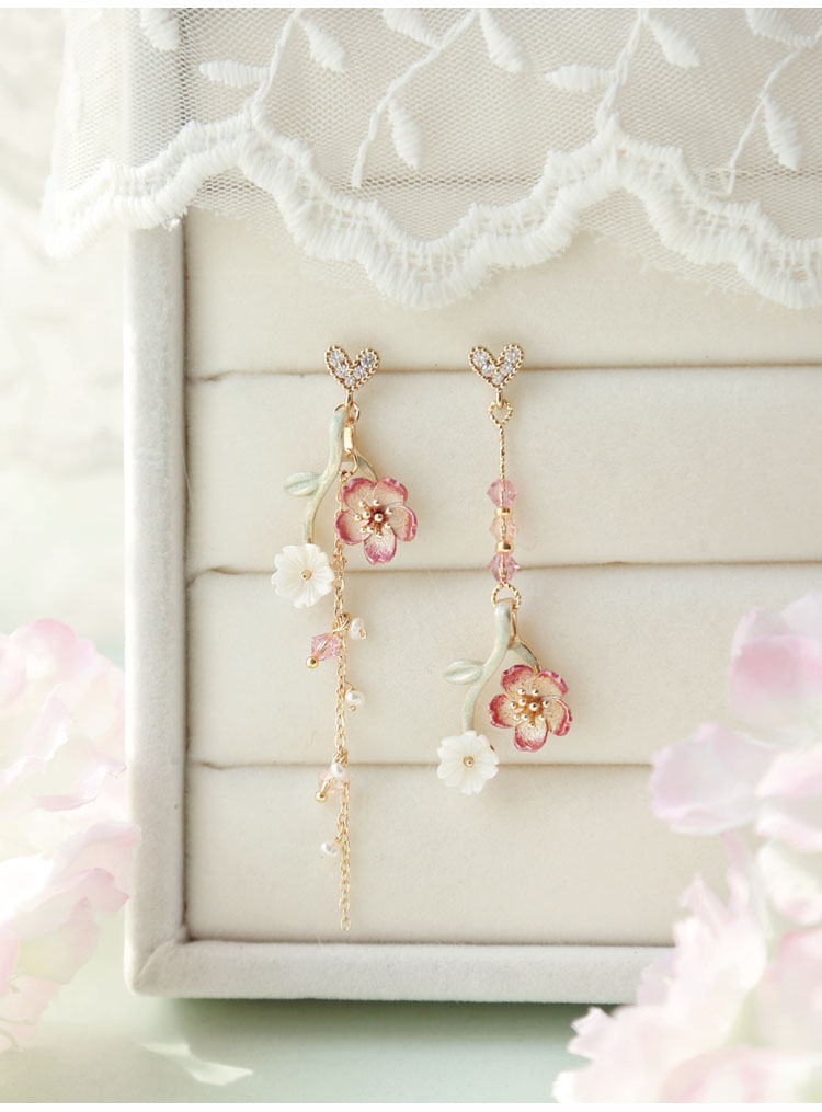 Color Classification: A pair of "Sakura Branch" earrings, "Sakura Branch" non-pierced ear clips