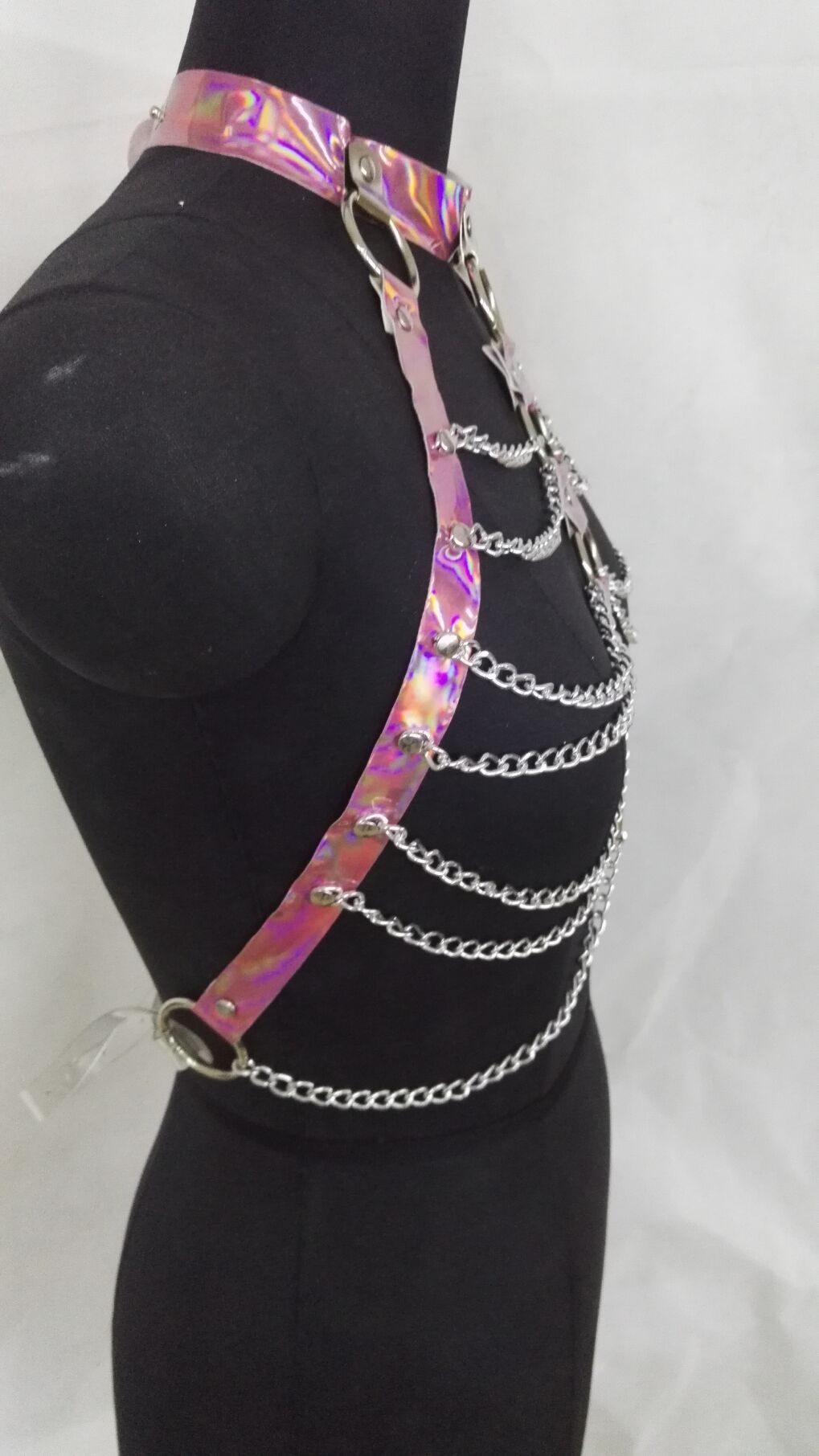 Women fashion punk gothic body bust harness belt, dazzle colour, one size fits most.