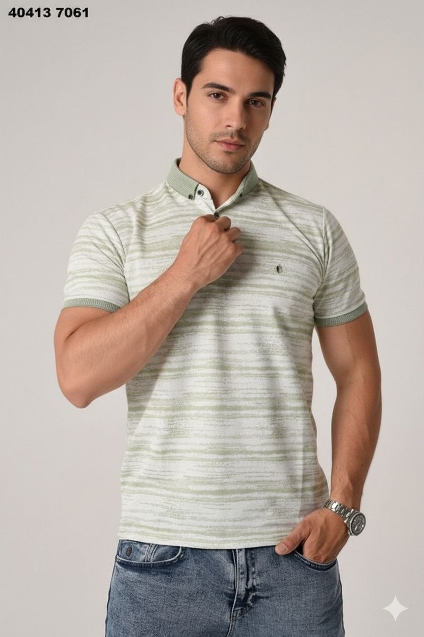 Collar: Features a classic buttoned polo collar in a solid contrasting tone with ribbed detailing for a sharp, clean look.