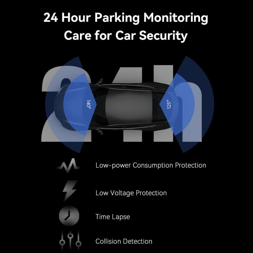 • مراقبة المواقف على مدار الساعة: تدعم وضع مراقبة وقوف السيارة (عبر التصوير بالفاصل الزمني أو استشعار التصادم)، مع ملاحظة أن هذه الميزة تتطلب تركيب وصلة "Hardwire Kit" تُباع منفصلة.